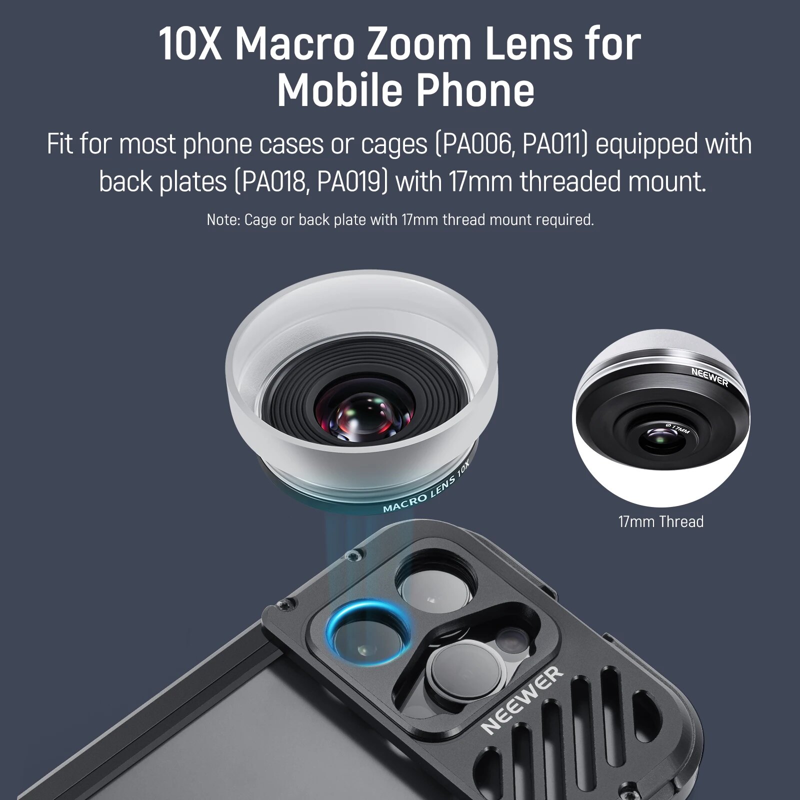 Макрообъектив NEEWER HD 10X со съемной блендой-диффузором для iPhone Samsung Phone Cage Rig с адаптером для объектива 17 мм информация: