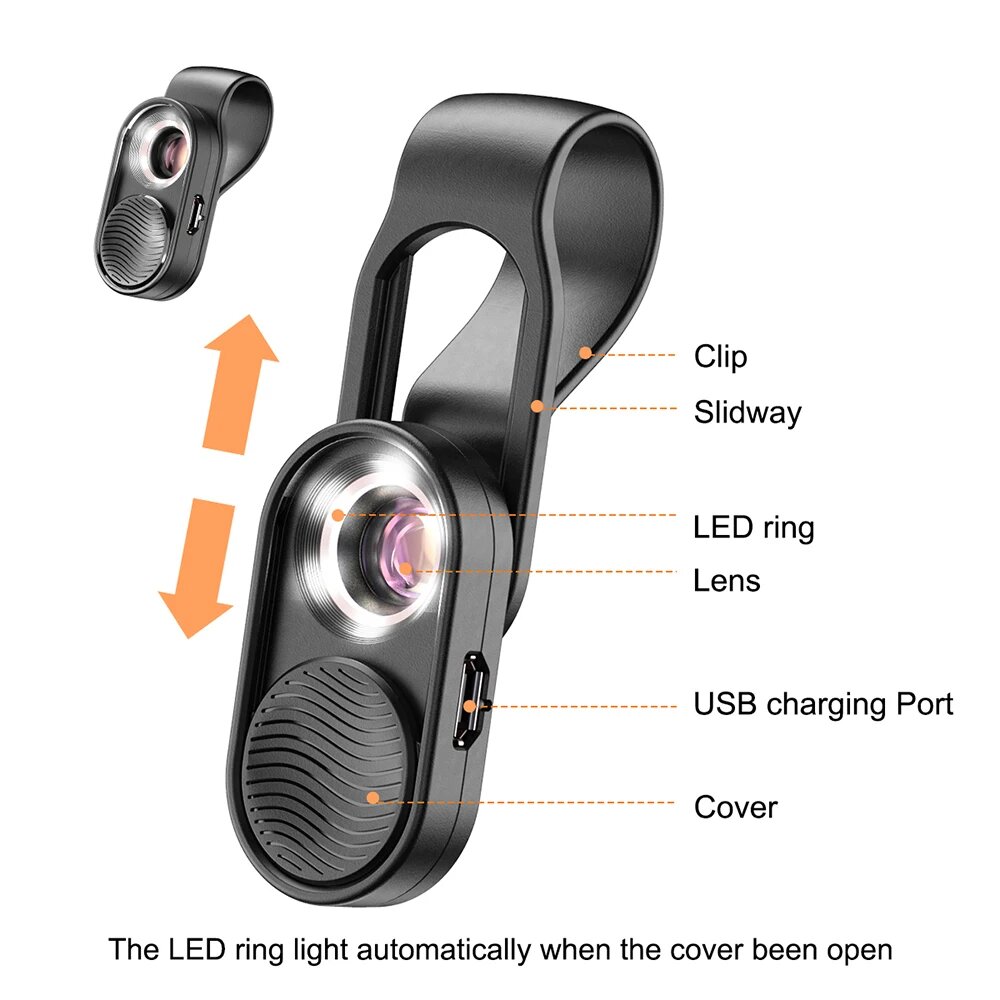 Широкоугольный макрообъектив-линза для телефона 2 в 1, 0.45Х, 37 мм, черный