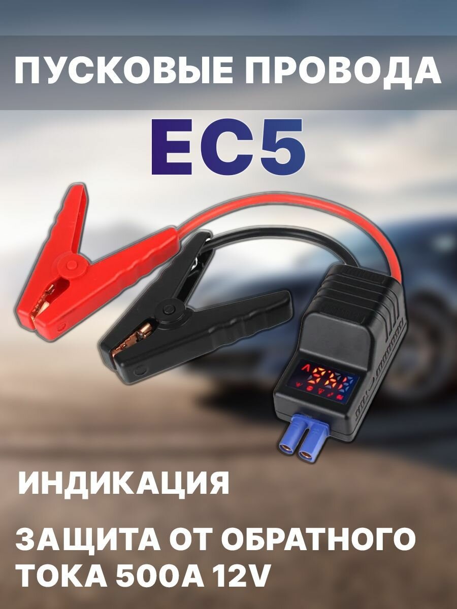 Пусковые провода для прикуривания автомобиля разъем EC5 c индикацией и защитой от обратного тока 500A 12V информация: