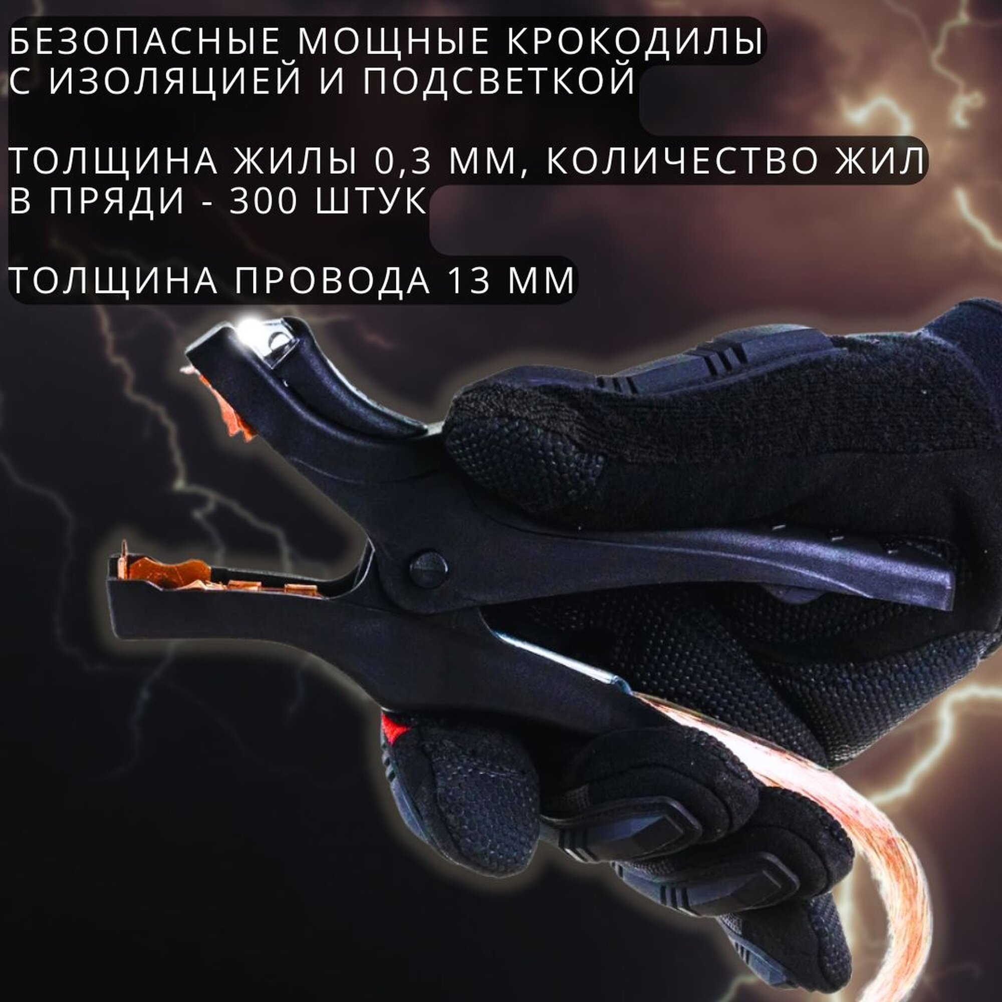 Провода для прикуривания автомобиля, 2 метра, 600А, 16мм2, резина.