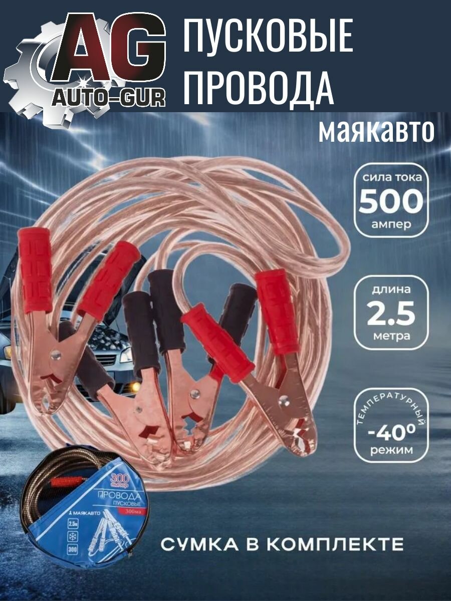 10 цен на Маякавто. Провода прикуривателя 500А, длина 2.5м. 500MA