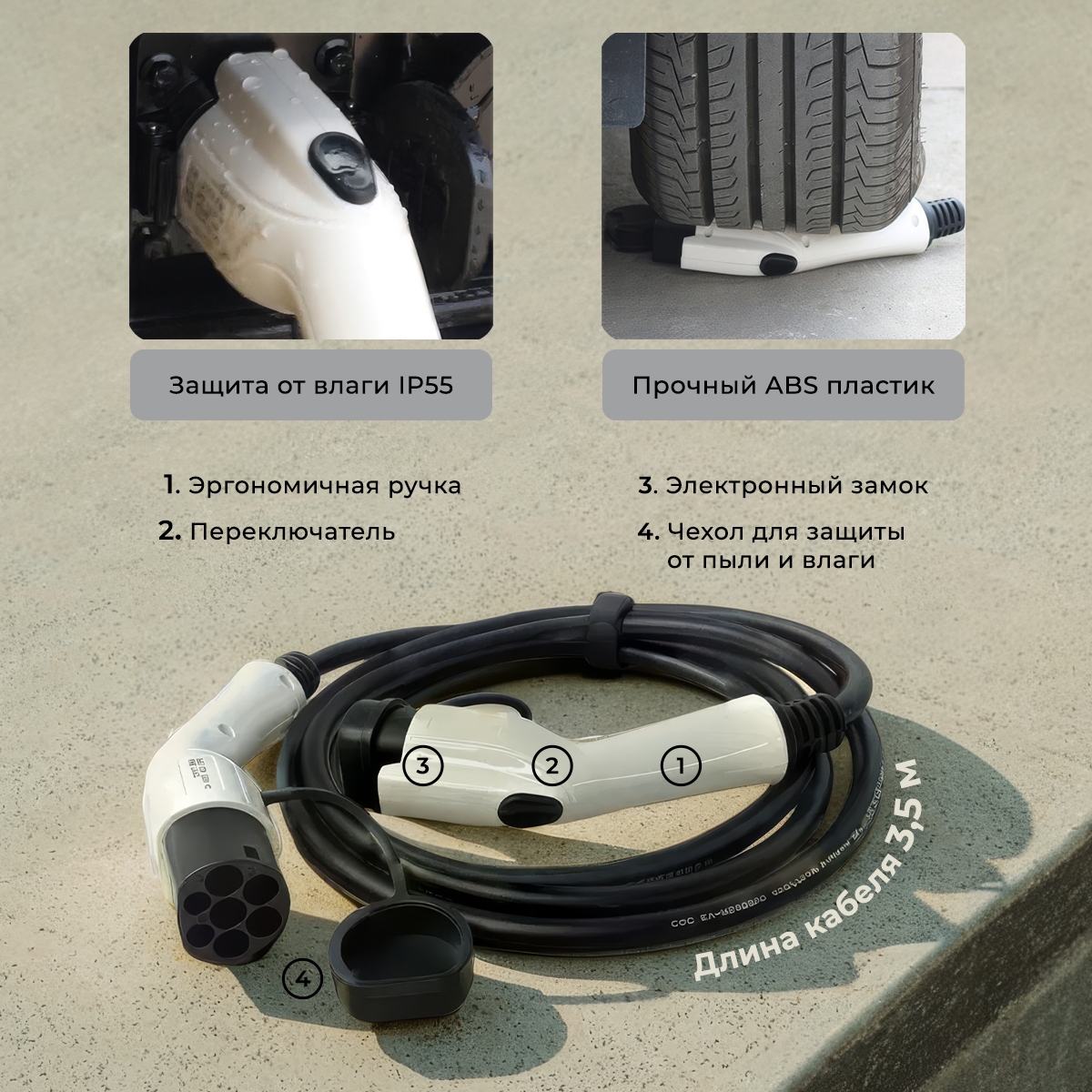 Отзывы на Зарядный кабель для электромобиля Type 2 - GBT, длина кабеля 3,5м