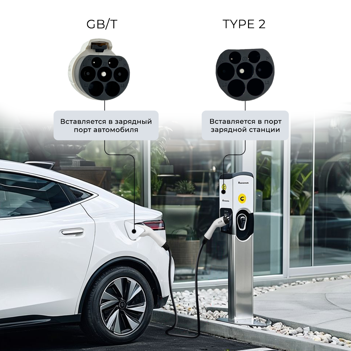 Зарядный кабель для электромобиля Type 2 - GBT, длина кабеля 3,5м информация: