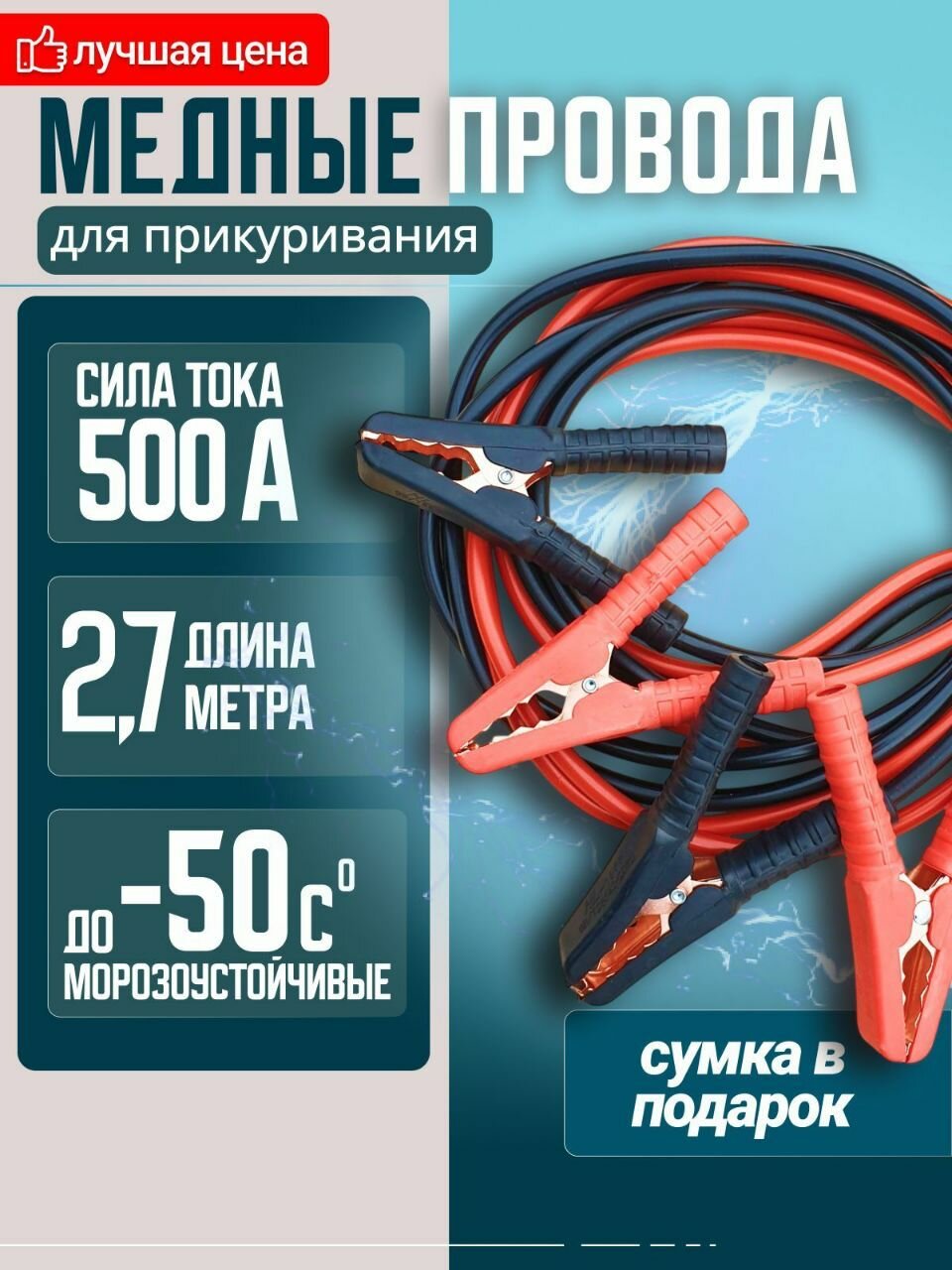 10 цен на Провода пусковые (500А, 2.7 метра) для прикуривания автомобиля (стартовые провода)