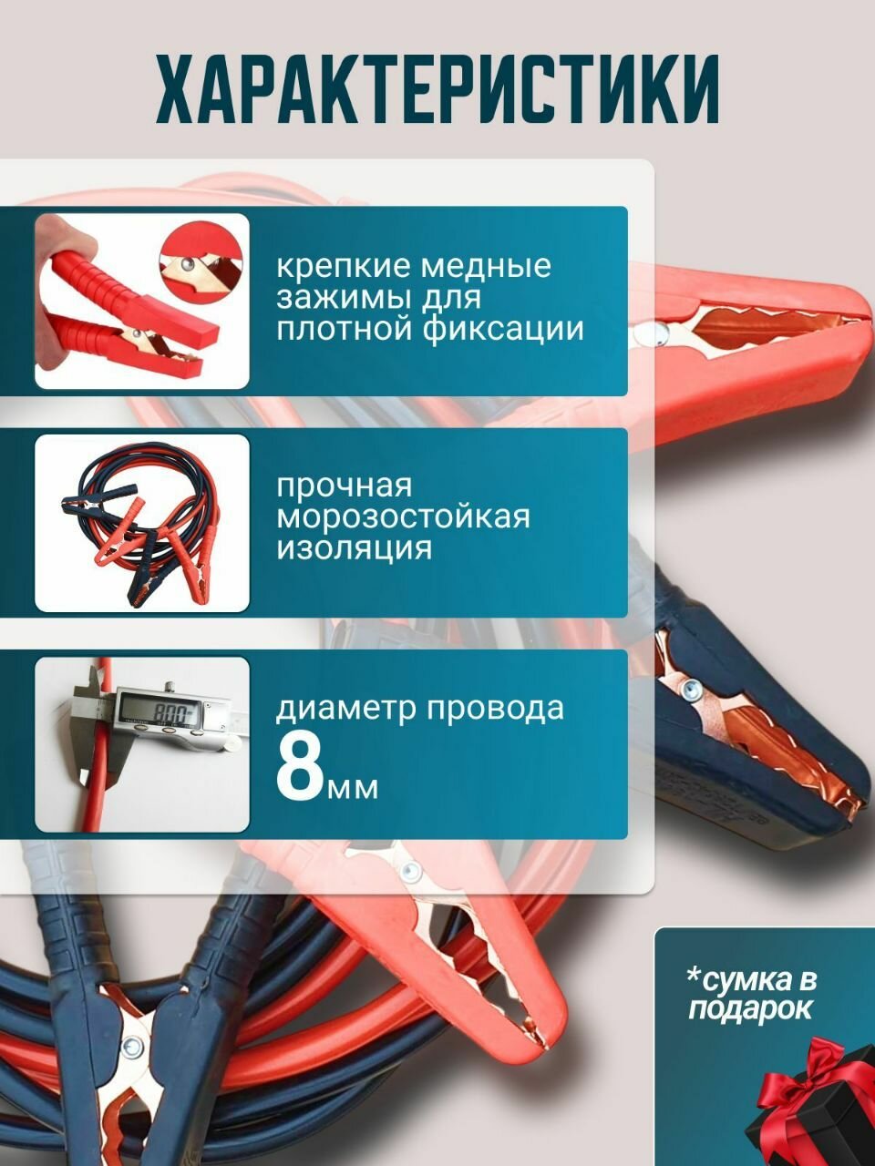 Провода пусковые (500А, 2.7 метра) для прикуривания автомобиля (стартовые провода) информация: