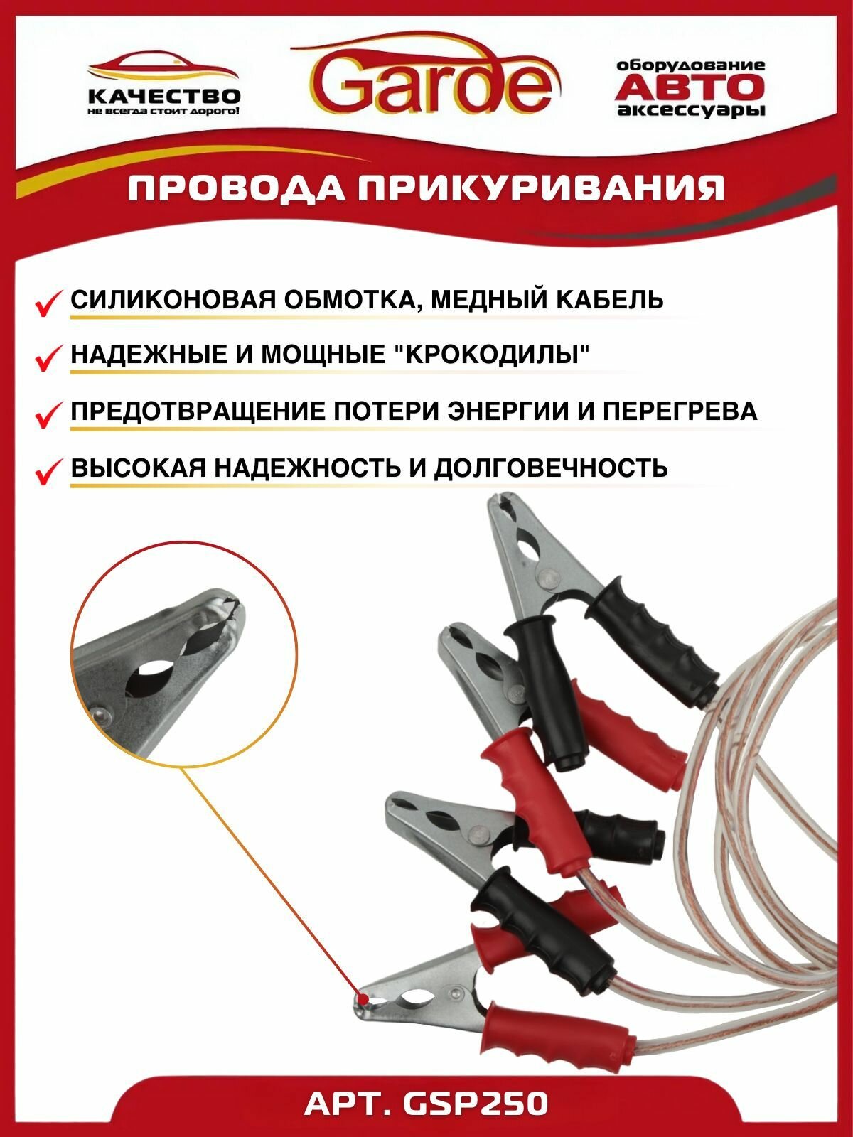 10 цен на Провода прикуривателя силиконовые 250А 2м Garde медные GSP250