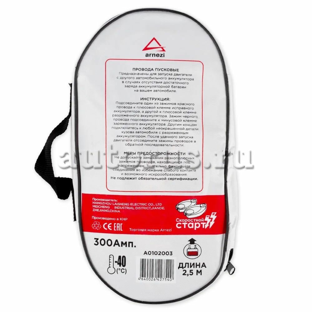 10 цен на Провода прикуривания АКБ 300А 2,5 м в сумке (12В, d8,5 мм 128жил, -40С) ARNEZI A0102003