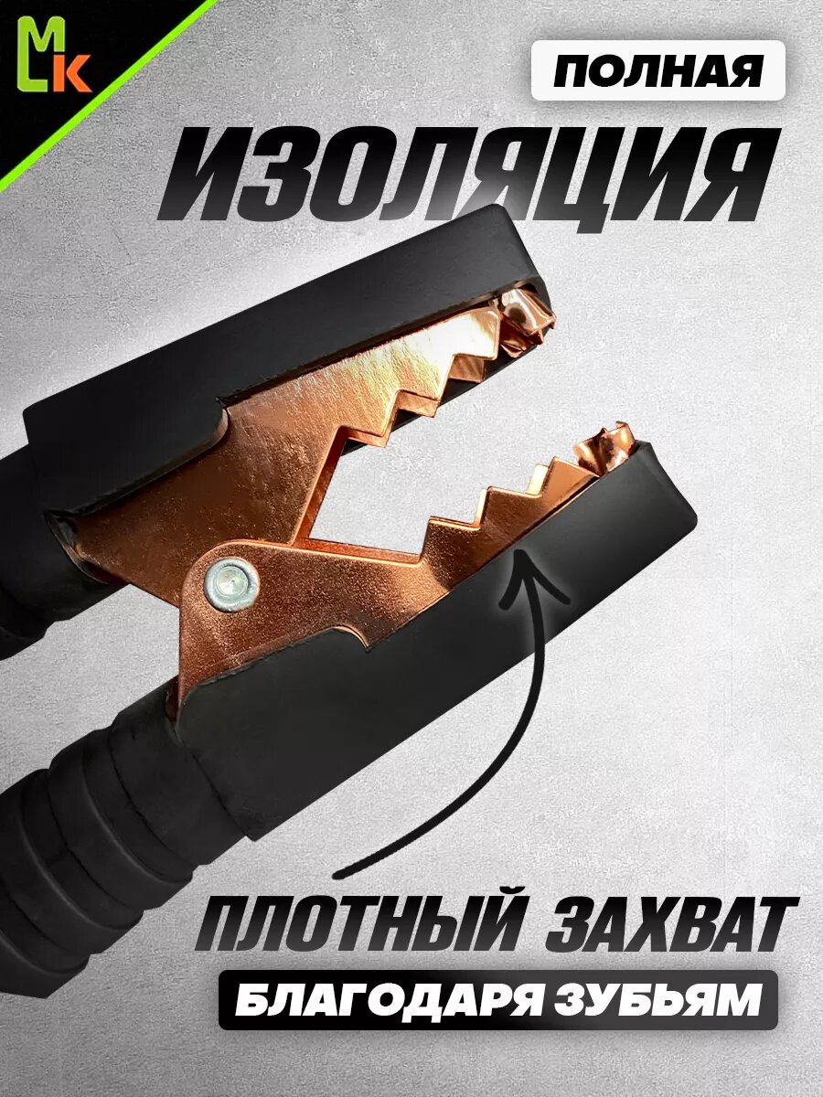 Провода для прикуривания автомобиля, 2 метра, 600А, 16мм2, резина.