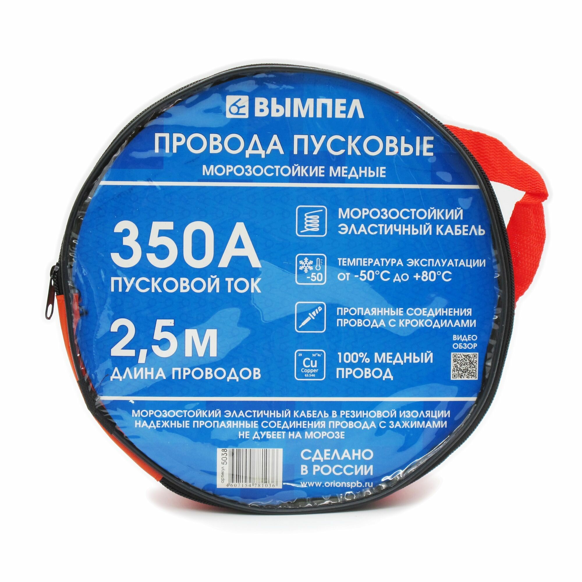 Пусковые провода (стартовые, прикуривания) Вымпел 350А 2,5м хладостойкие медные информация: