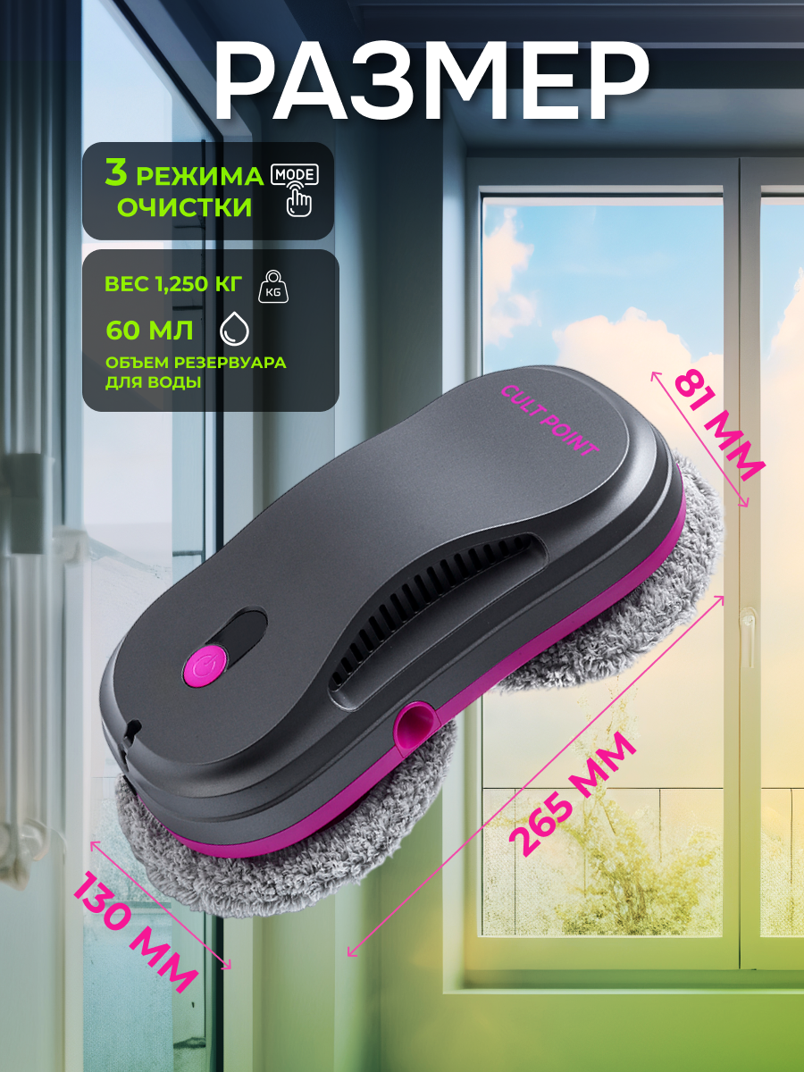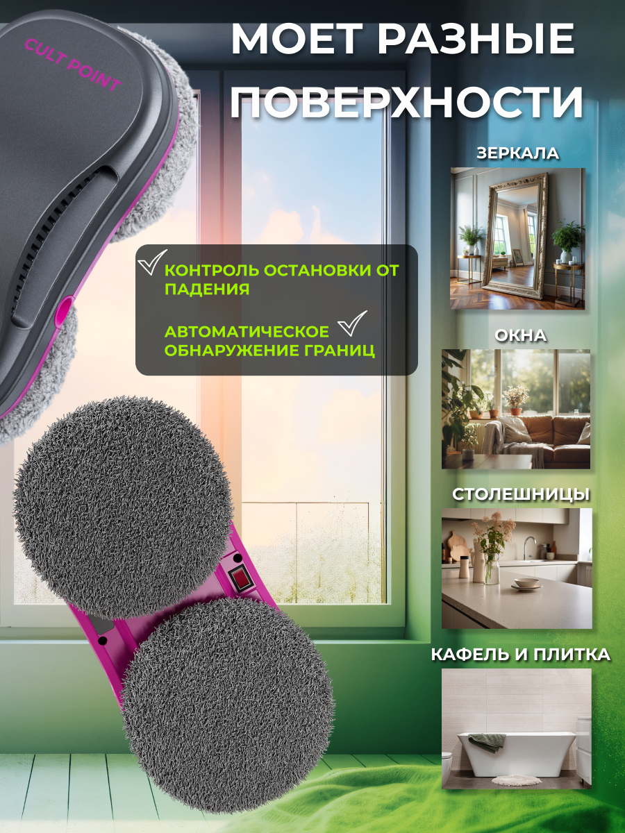 Робот мойщик окон с двойным распылением, чёрный, Cult Point информация: