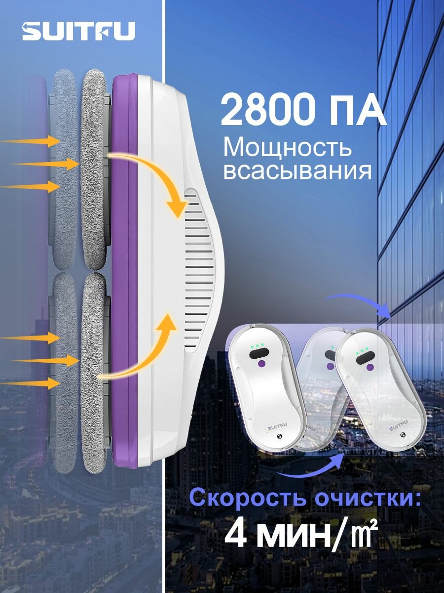 10 цен на Робот мойщик окон Suitfu HCR-07 Робот-стеклоочиститель, белый и фиолетовый робот для мытья окон