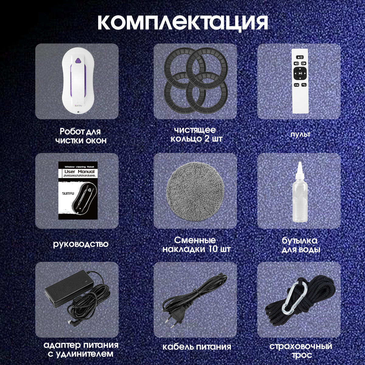 Робот мойщик окон с двойным распылением SUITFU RN2, набор салфеток 10 шт, робот для мытья окон белый+фиолетовый информация: