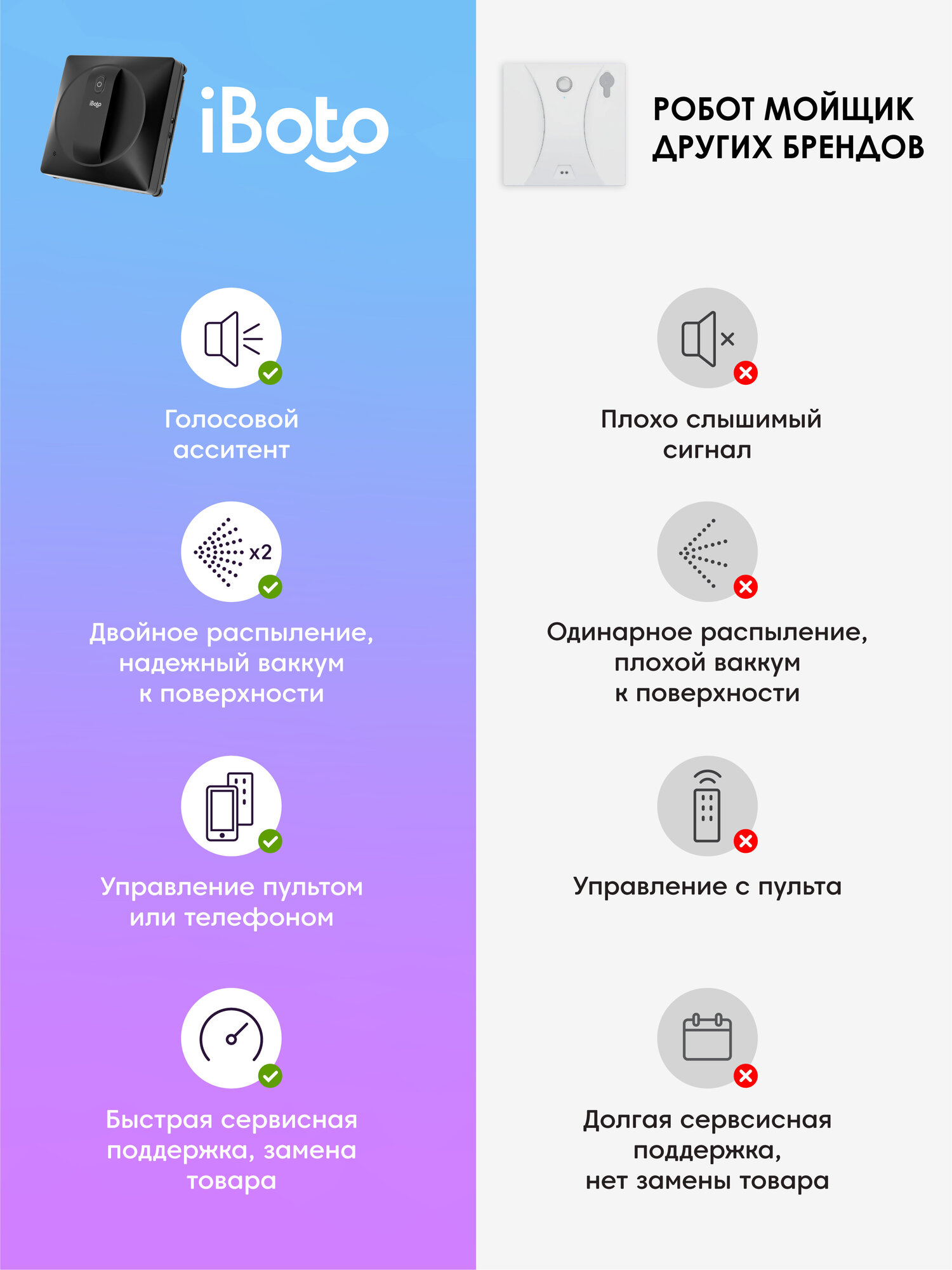Отзывы на Робот мойщик для окон с распылением двойным iBoto Win 290V, черный