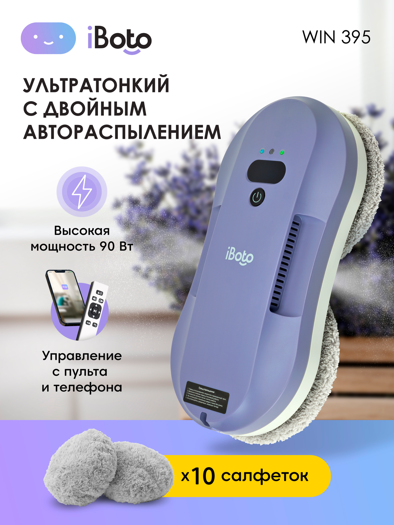 Робот мойщик окон с двойным автораспылением iBoto Win 395, лавандовый информация: