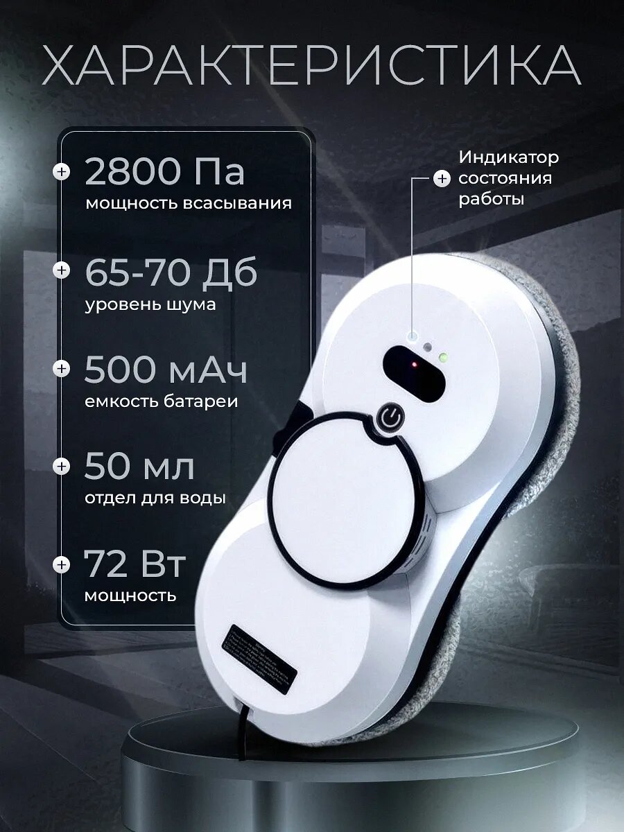 Робот-мойщик окон, с распылителем, страховочный шнур 4 м, пульт ДУ, 90 Вт, 10 сменных тряпок