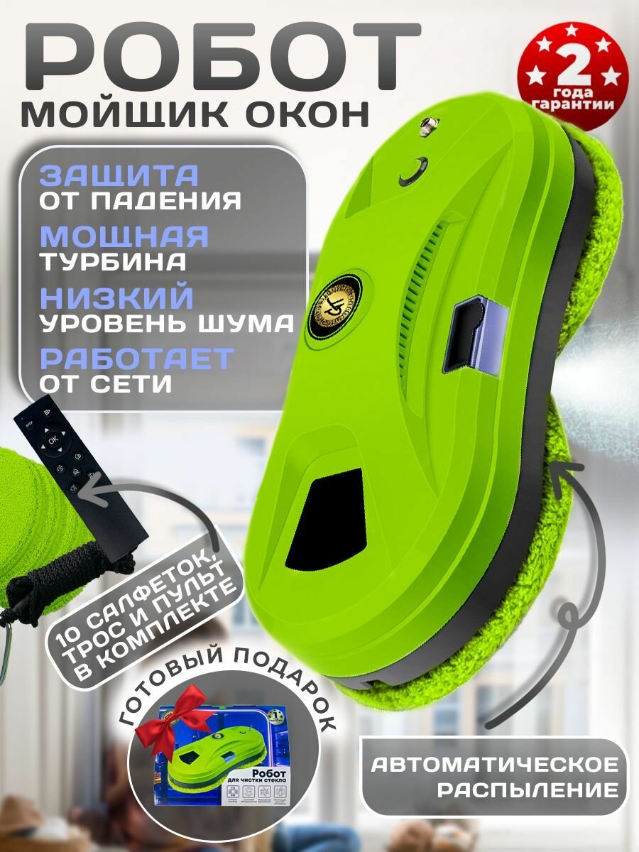 Умный робот-мойщик окон Двойное распыление, автоочистка, 10 сменных салфеток из микрофибры, Gelios YW163