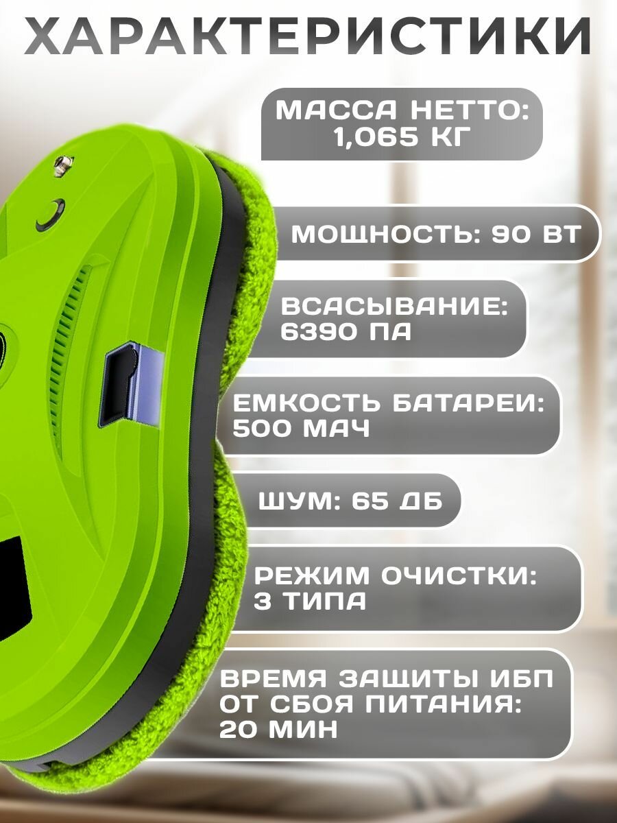 Робот-мойщик окон, с распылителем, страховочный шнур 4 м, пульт ДУ, 90 Вт, 10 сменных тряпок