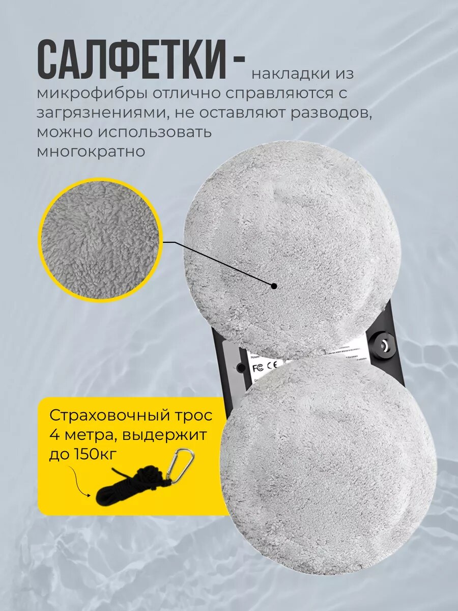 Робот-мойщик окон, с распылителем, страховочный шнур 4 м, пульт ДУ, 90 Вт, 10 сменных тряпок
