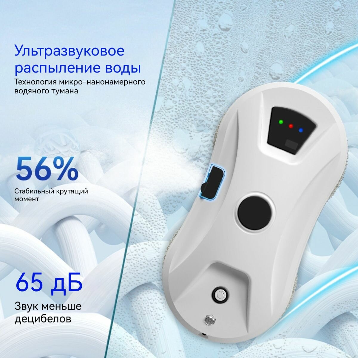 Робот-мойщик окон, с распылителем, страховочный шнур 4 м, пульт ДУ, 90 Вт, 10 сменных тряпок