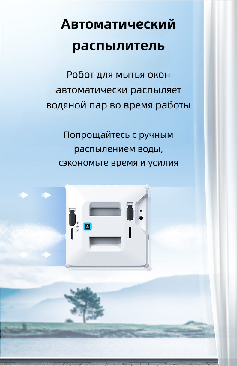 Робот для мытья окон Pultu T48 с распылителем, 3000 Pa, 80 Вт, EU, белый информация: