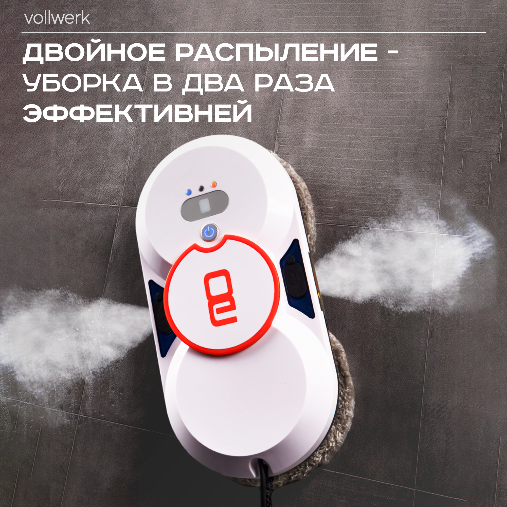 Робот-мойщик для окон Vollwerk, с двойным распылением, 10 салфеток, цвет белый информация: