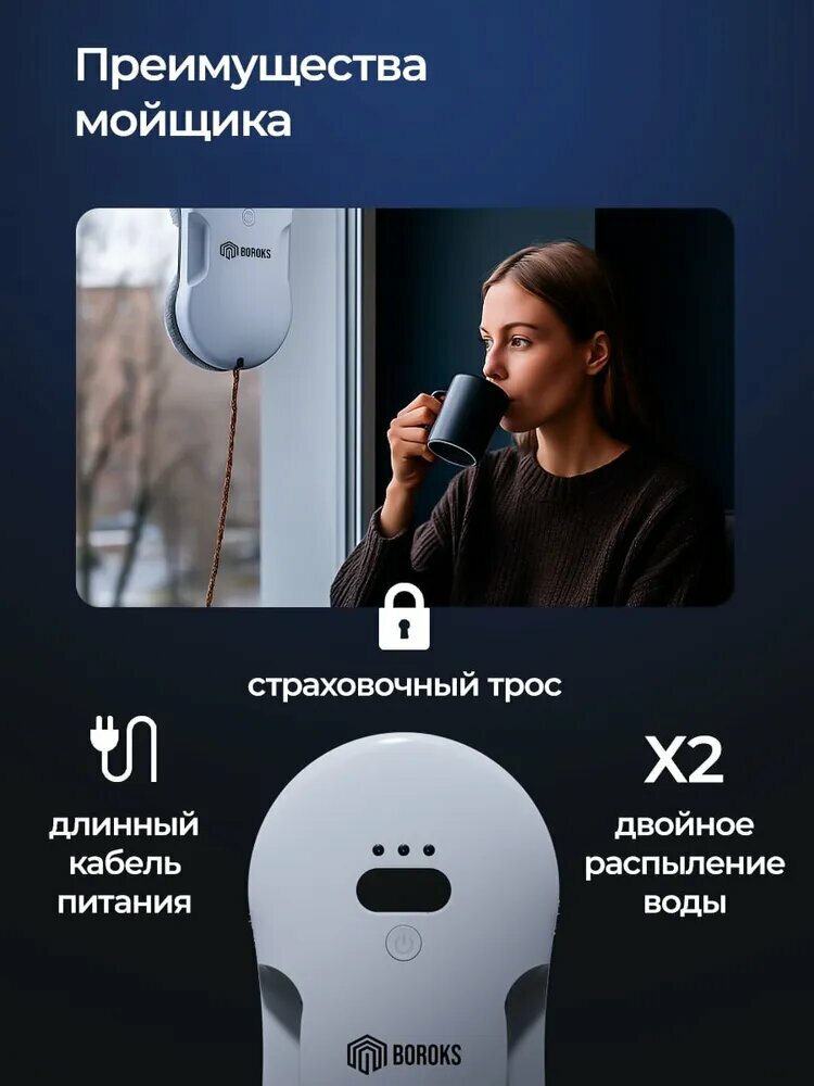 Отзывы на BOROKS Робот для мойки окон Робот мойщик окон, мощный пылесос стеклоочиститель , для сухой и влажной уборки, серый