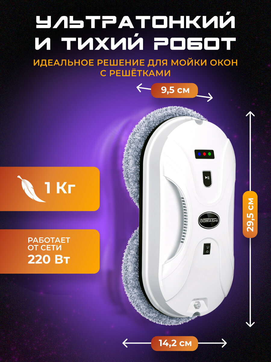 Робот для мойки окон, стекол, зеркал Domashi Amy, 14 салфеток информация: