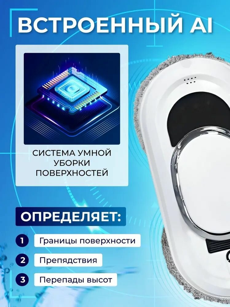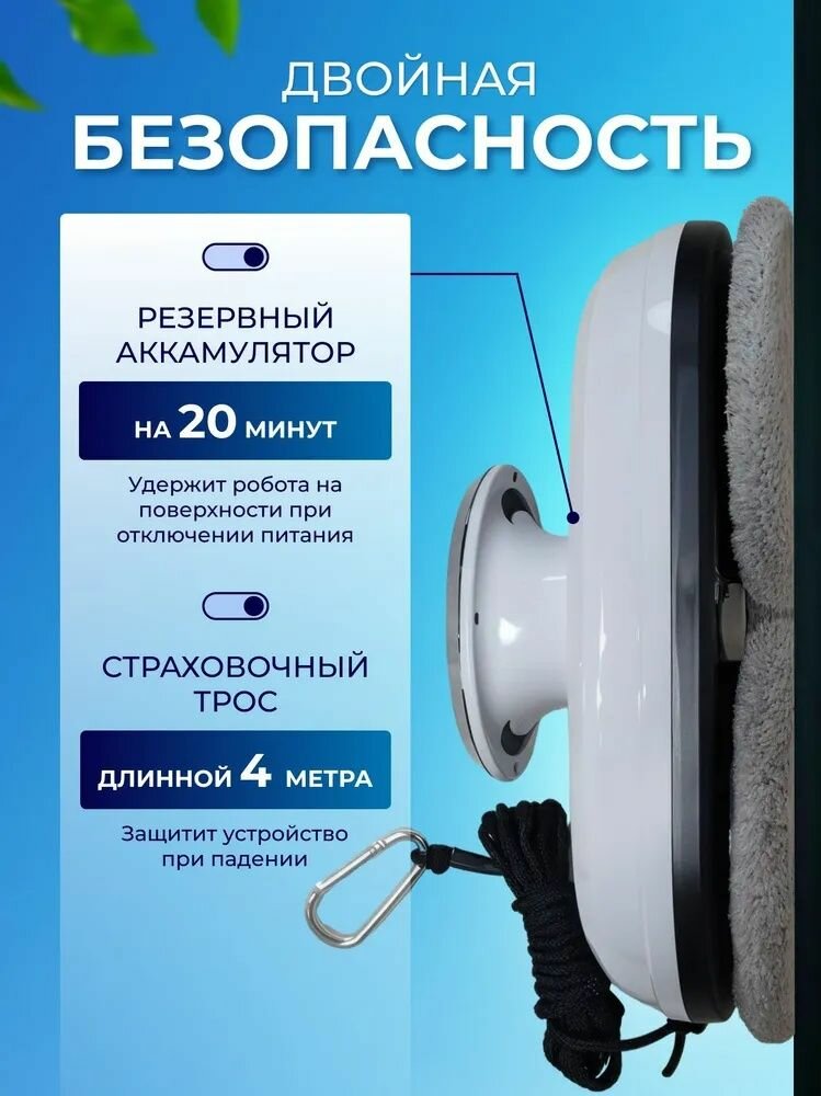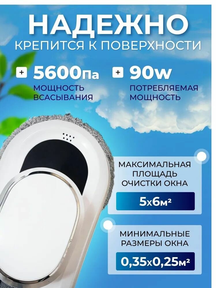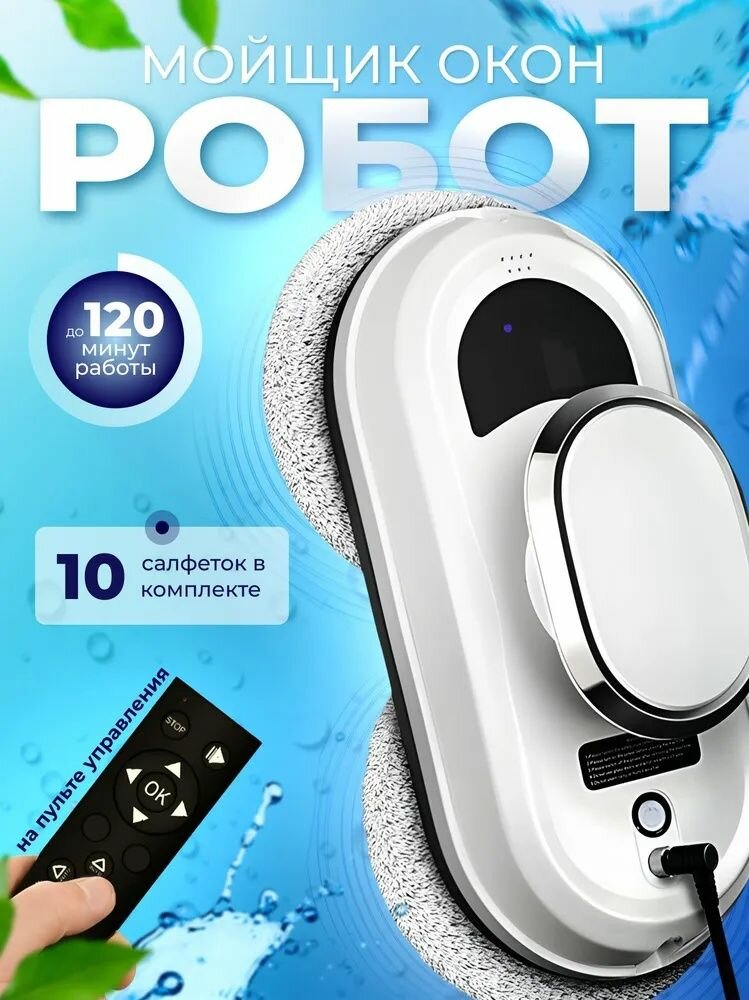 Робот-мойщик окон, с распылителем, страховочный шнур 4 м, пульт ДУ, 90 Вт, 10 сменных тряпок