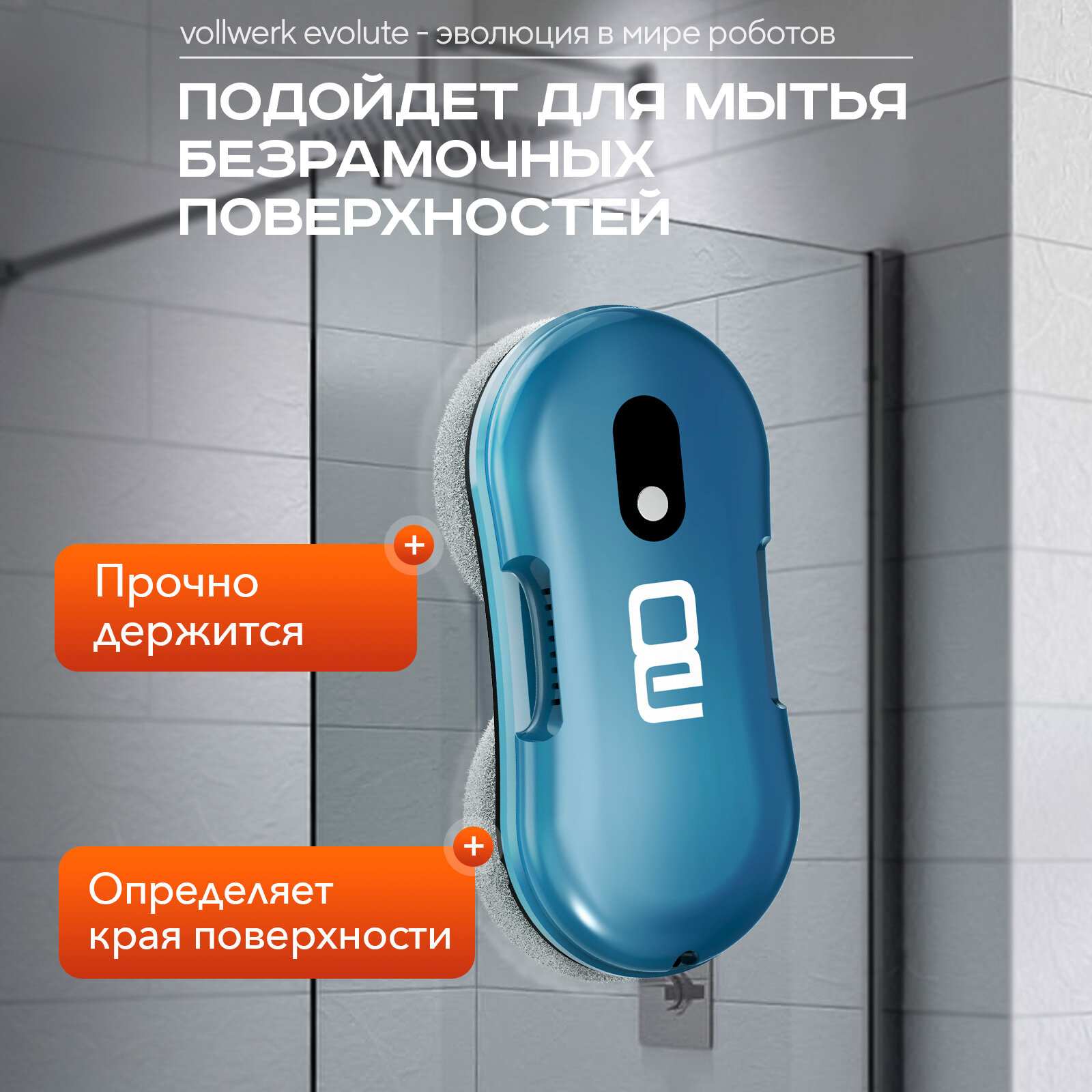 Отзывы на Робот-мойщик для окон Vollwerk Sapphire, с двойным распылением и датчиком обнаружения края, 18 салфеток, цвет сапфир