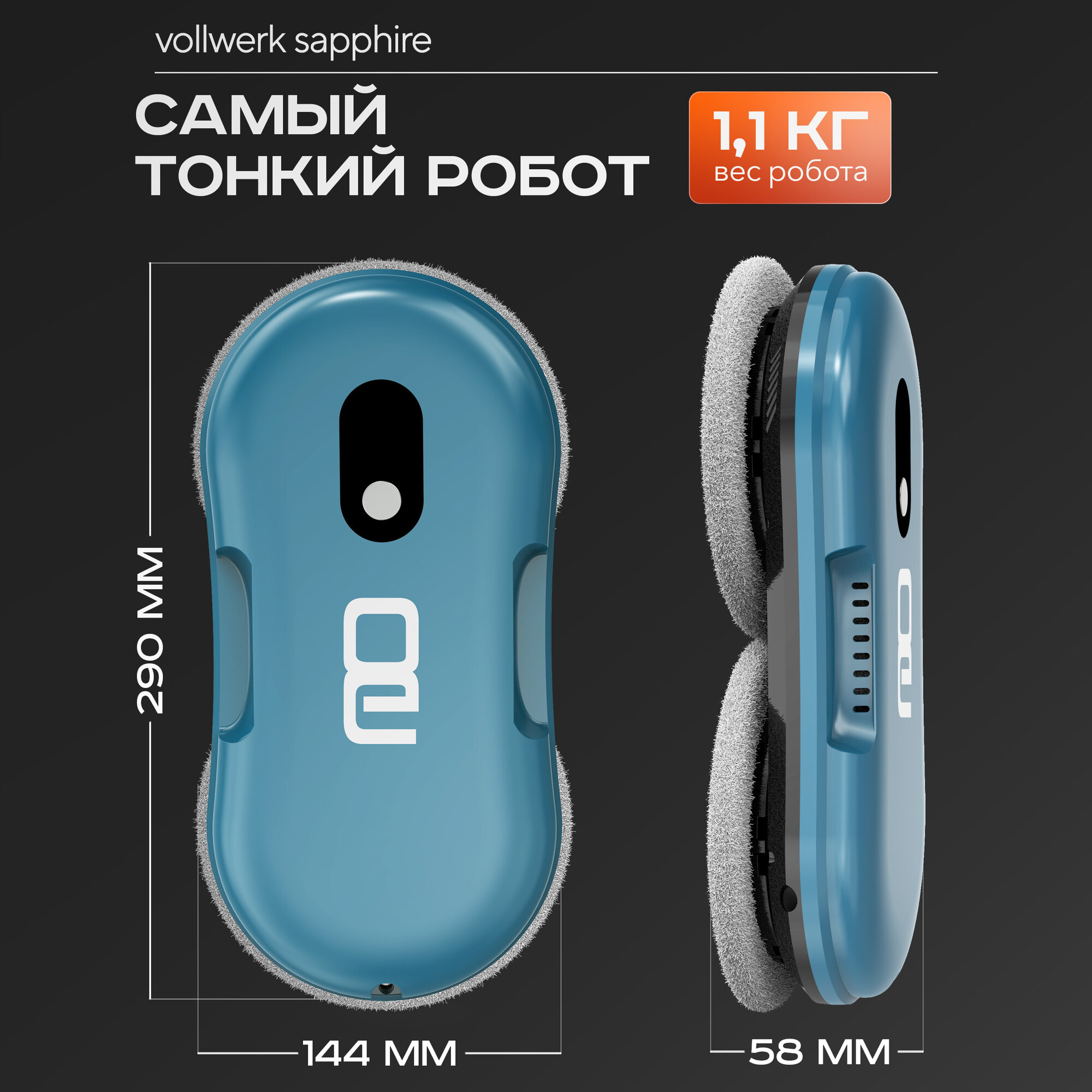 Робот-мойщик для окон Vollwerk Sapphire, с двойным распылением и датчиком обнаружения края, 18 салфеток, цвет сапфир информация: