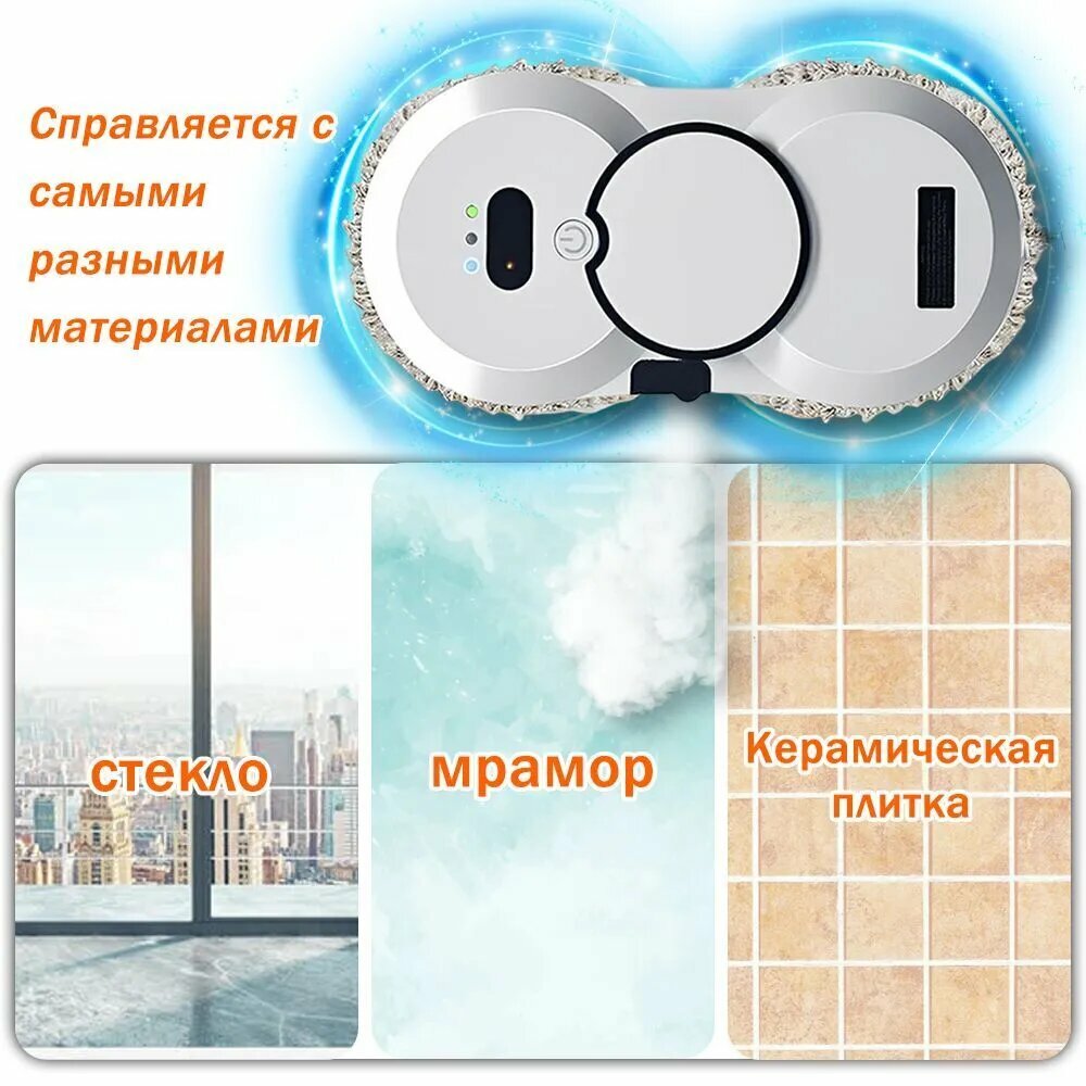 Робот для мытья окон с распылением и со сменными салфетками 10 шт HCR-10-01, белый информация: