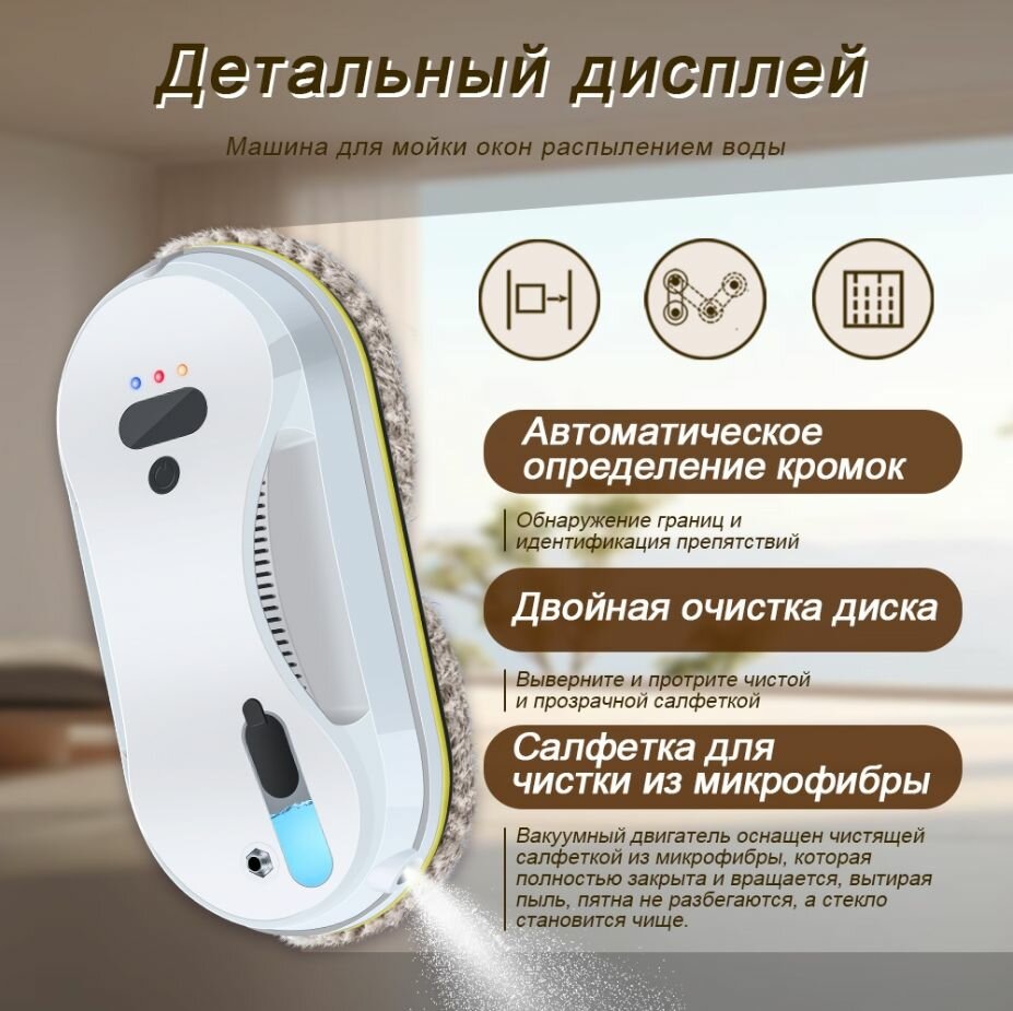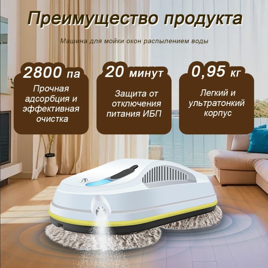 Робот мойщик окон со сменными салфетками 10 шт, Большой резервуар для воды объемом 60 мл, 2 форсунки для воды