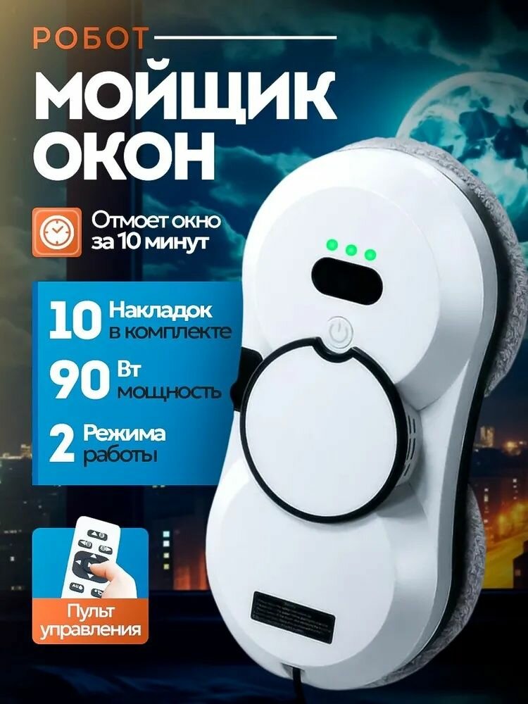Робот-мойщик окон, с распылителем, страховочный шнур 4 м, пульт ДУ, 90 Вт, 10 сменных тряпок