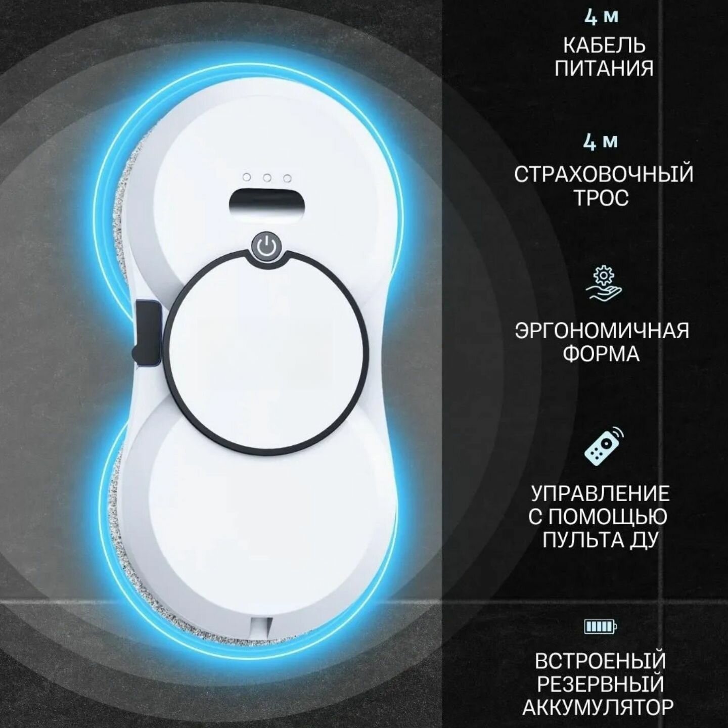 Робот-мойщик окон, с распылителем, страховочный шнур 4 м, пульт ДУ, 90 Вт, 10 сменных тряпок