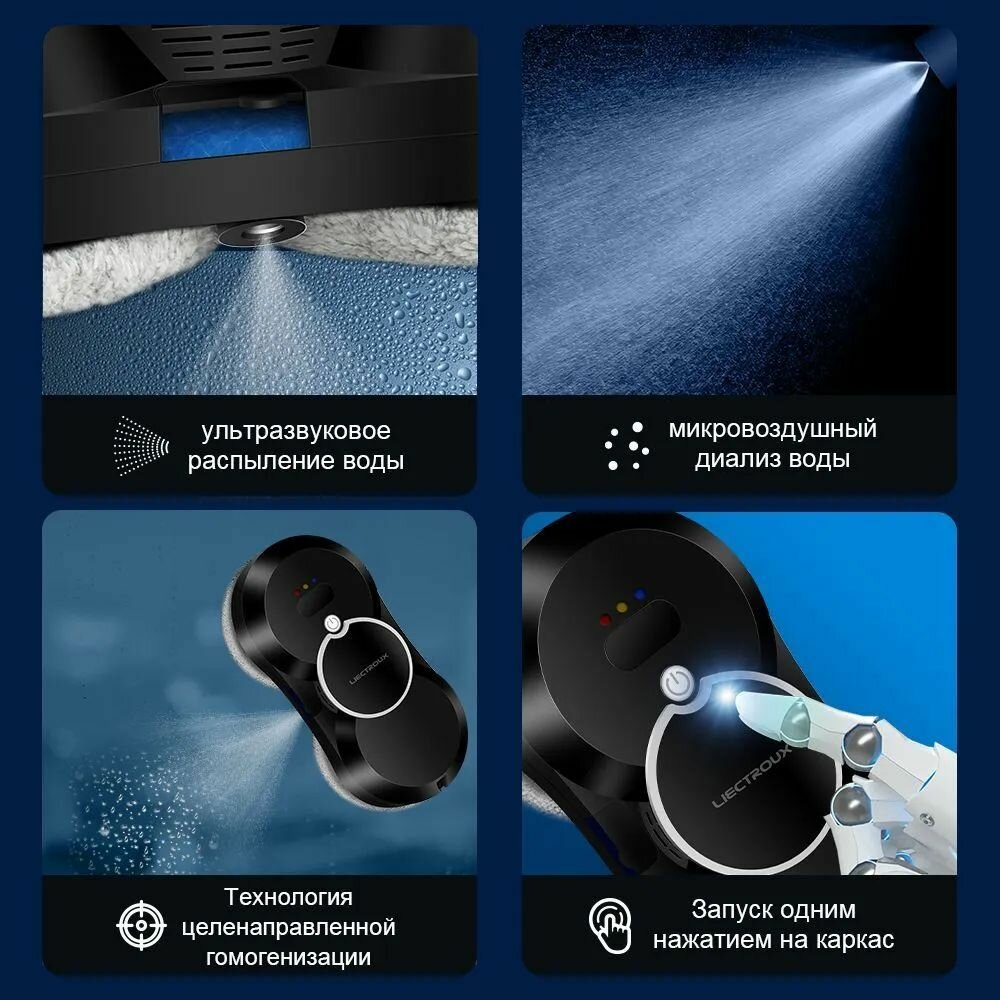 Робот-мойщик окон, с распылителем, страховочный шнур 4 м, пульт ДУ, 90 Вт, 10 сменных тряпок
