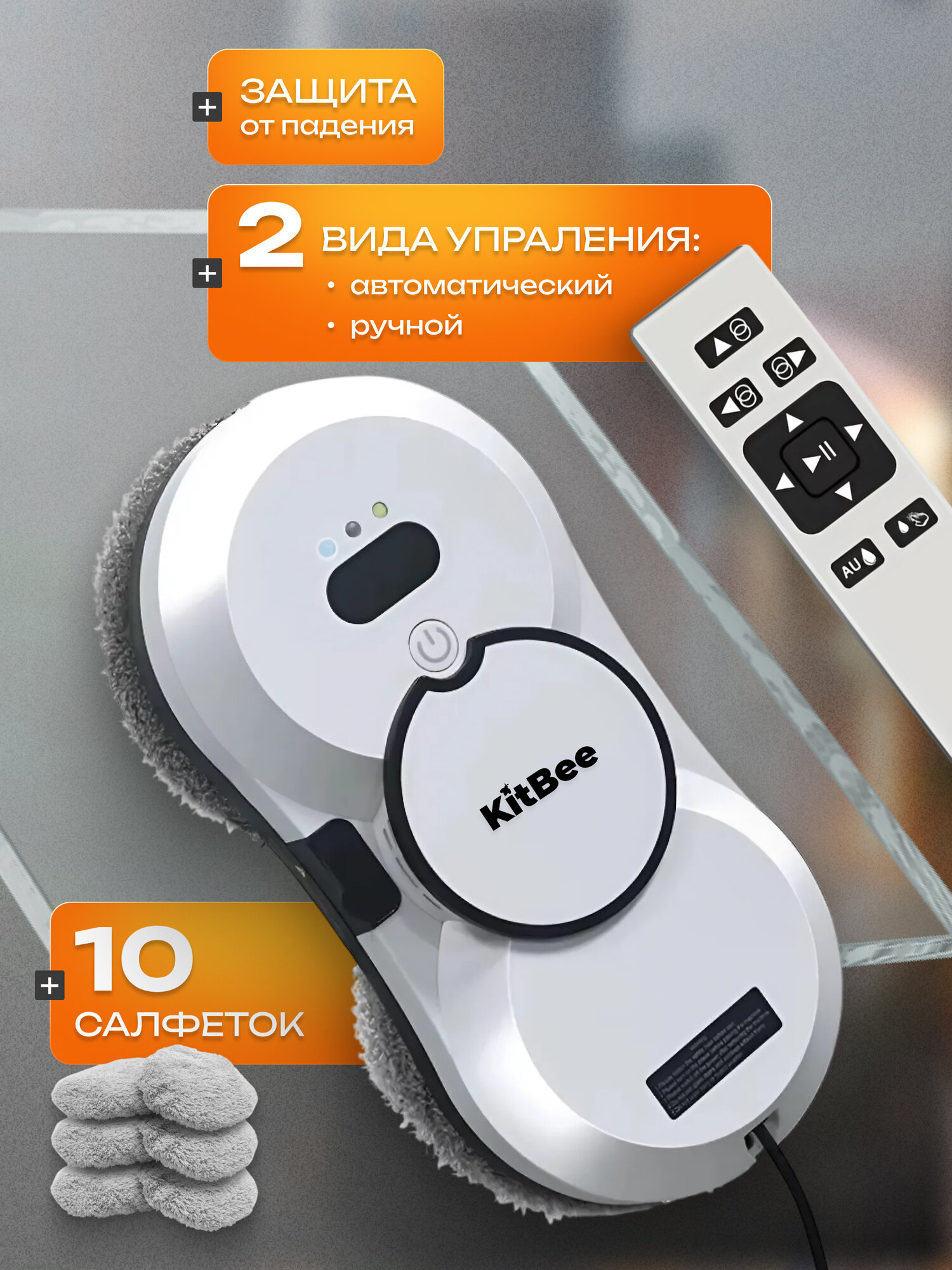 Отзывы на Робот мойщик окон с распылением KitBee мощный, для мойки окон, стеклоочиститель со сменными салфетками 10 шт