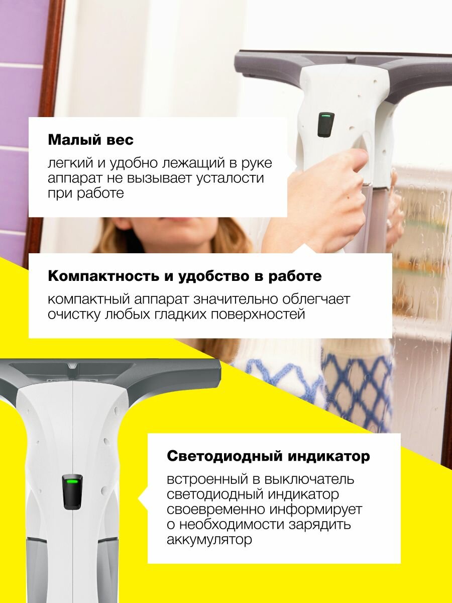 10 цен на Стеклоочиститель аккумуляторный Karcher WV 1 1.633-601.0, время автономной работы до 25 мин, съемный бак для грязной воды 100 мл