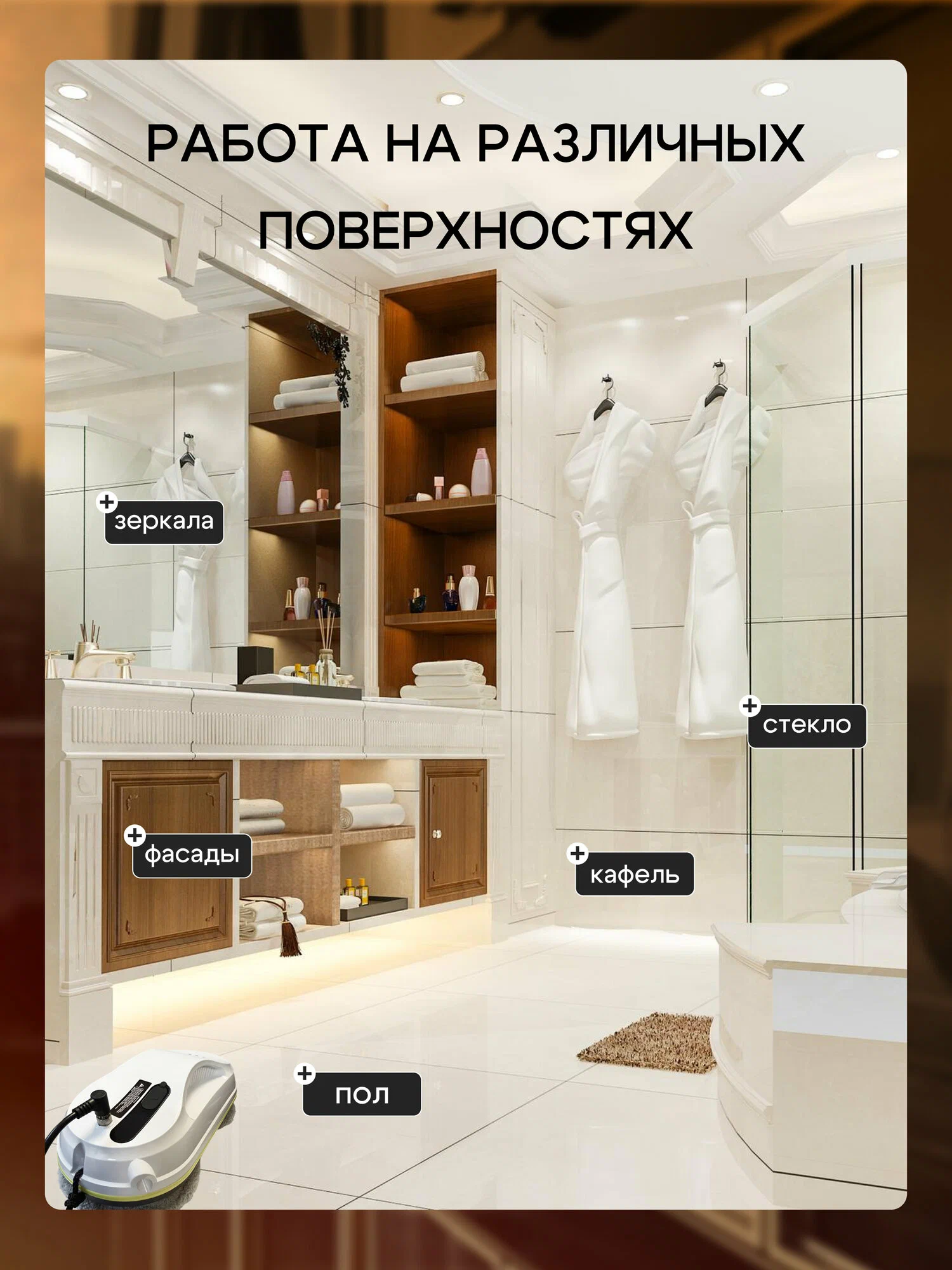 Робот-мойщик окон, с распылителем, страховочный шнур 4 м, пульт ДУ, 90 Вт, 10 сменных тряпок