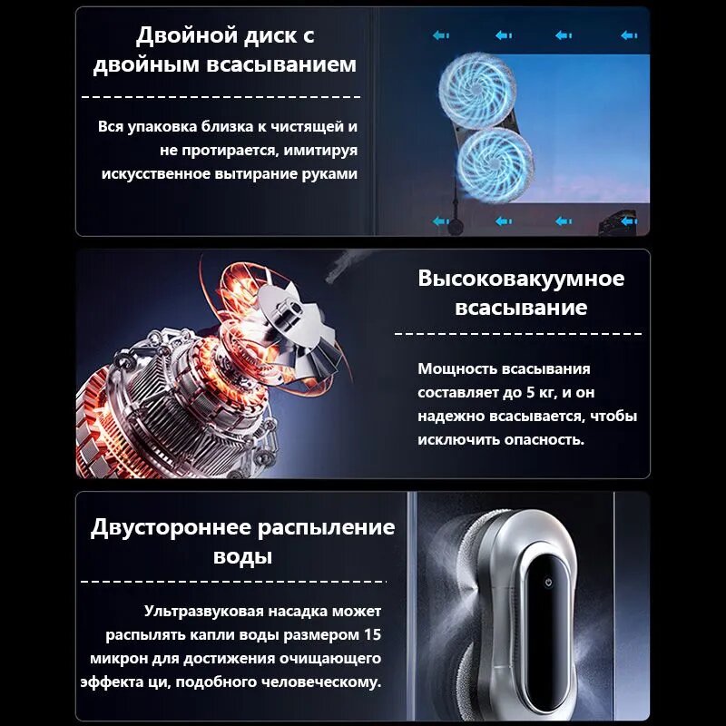 Отзывы на Робот для мытья окон, двустороннее распыление воды, двухдисковое двойное всасывание