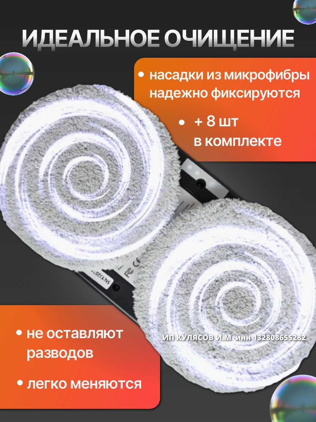 Робот мойщик окон со сменными салфетками 10 шт, Большой резервуар для воды объемом 60 мл, 2 форсунки для воды
