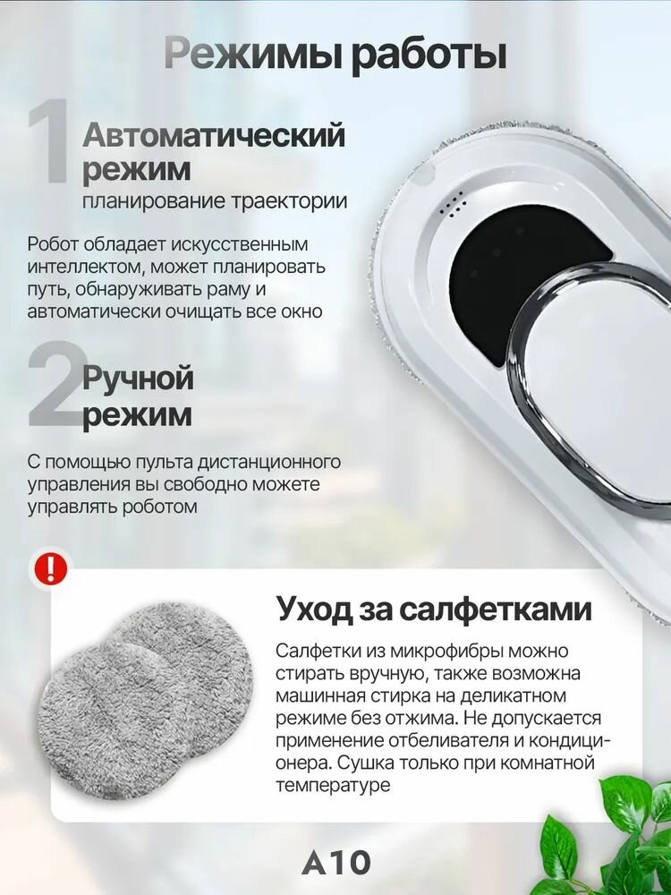 Робот для мойки окон A10 W11+салфеток из микрофибры 10 штук, Поставляется с веревкой для предотвращения падения с высоты информация:
