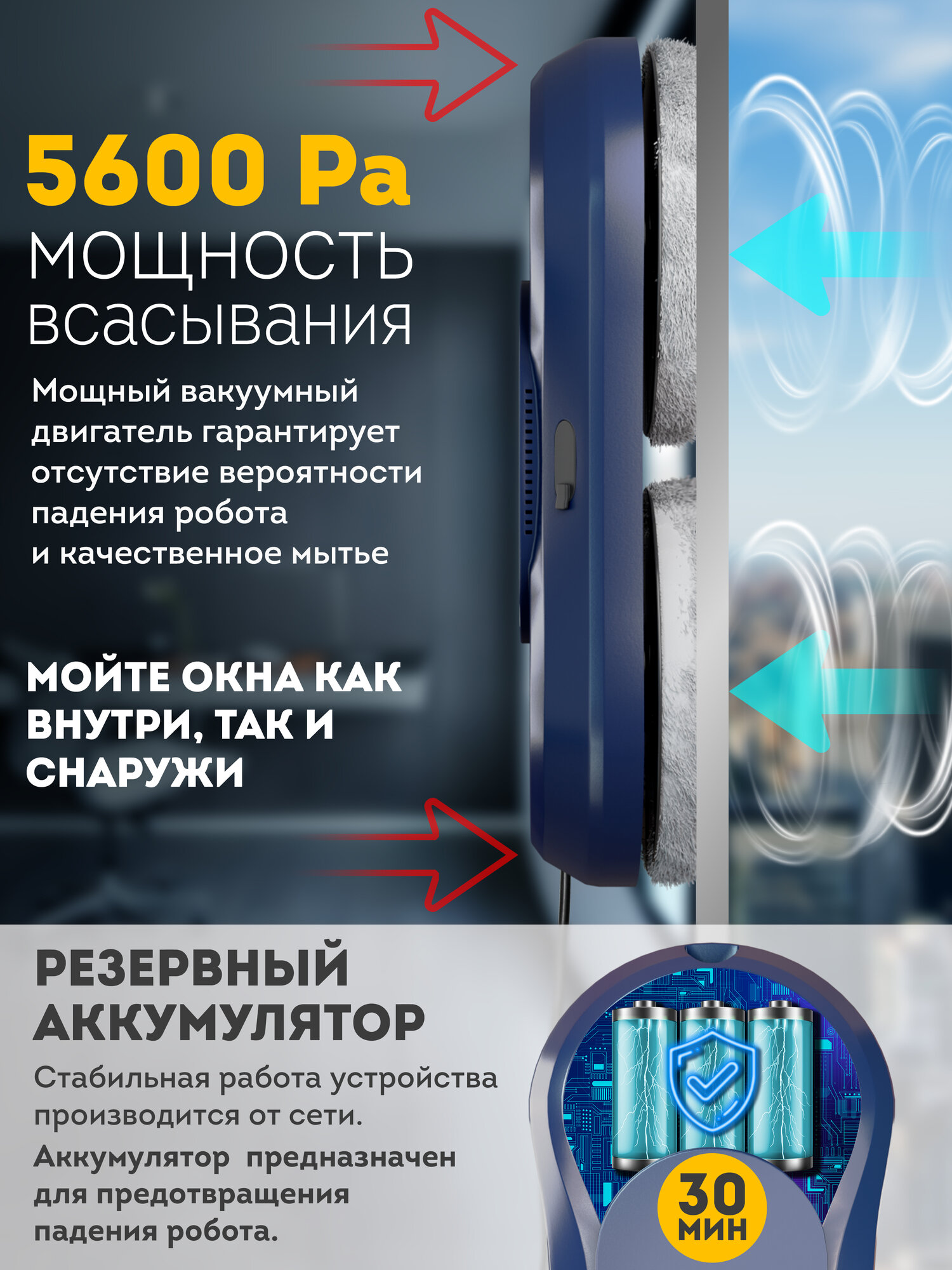Робот-мойщик окон, с распылителем, страховочный шнур 4 м, пульт ДУ, 90 Вт, 10 сменных тряпок