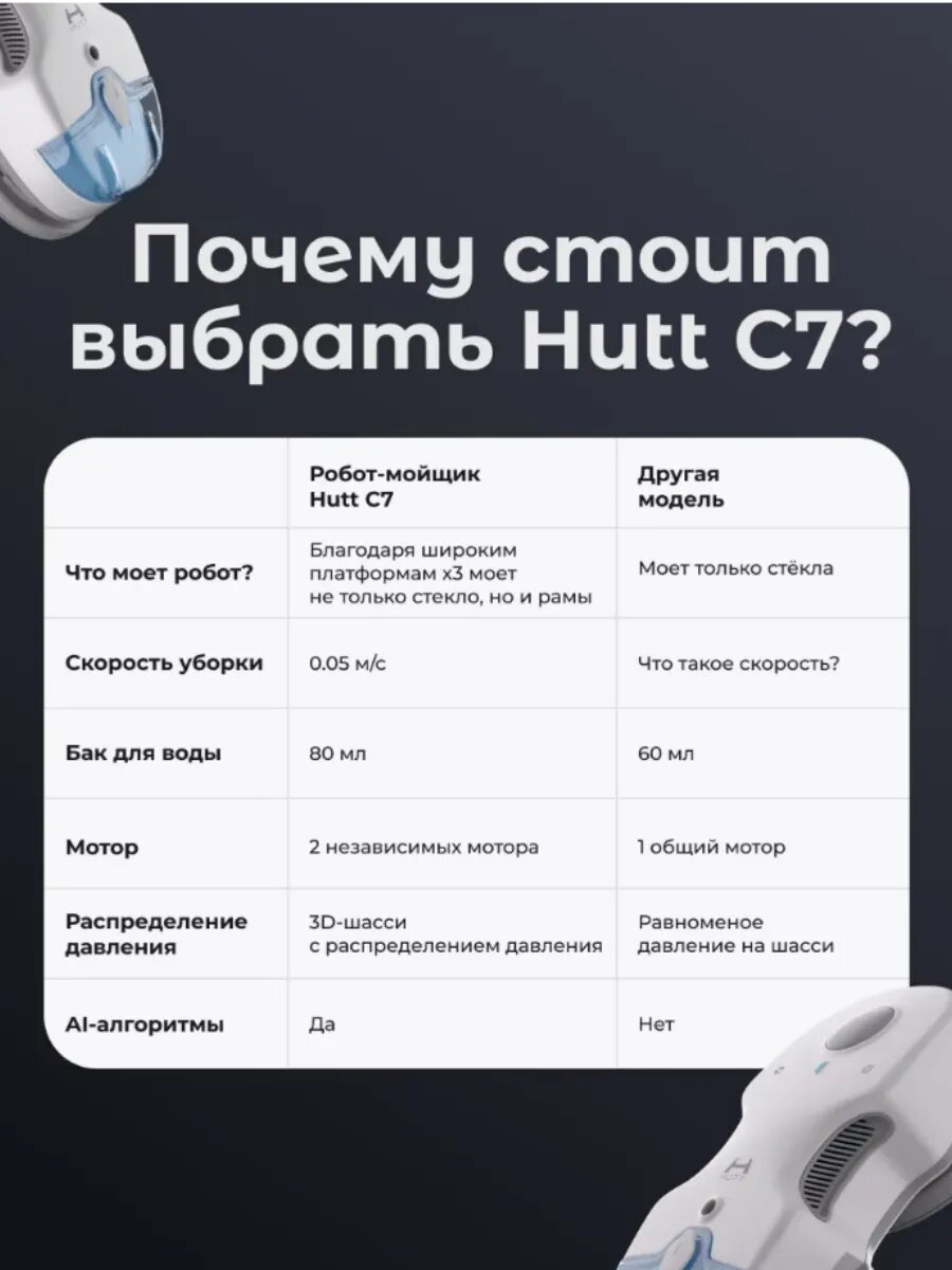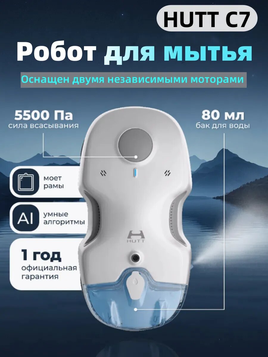 Робот-мойщик для чистки окон, зеркал, кафеля HUTT C7 (5500Pa) , белый информация: