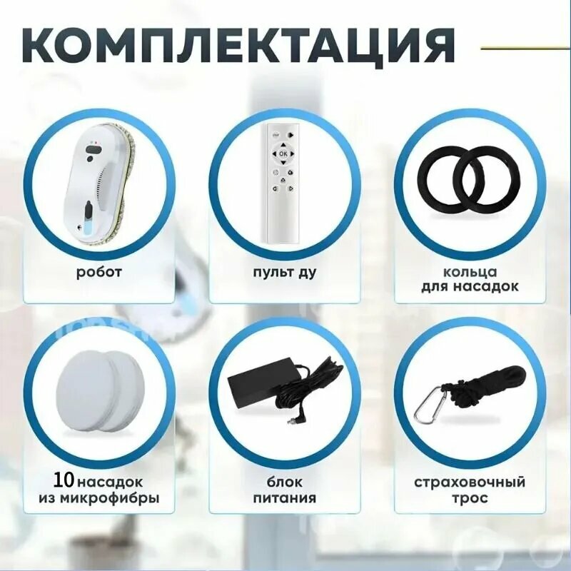 Робот-мойщик окон, с распылителем, страховочный шнур 4 м, пульт ДУ, 90 Вт, 10 сменных тряпок