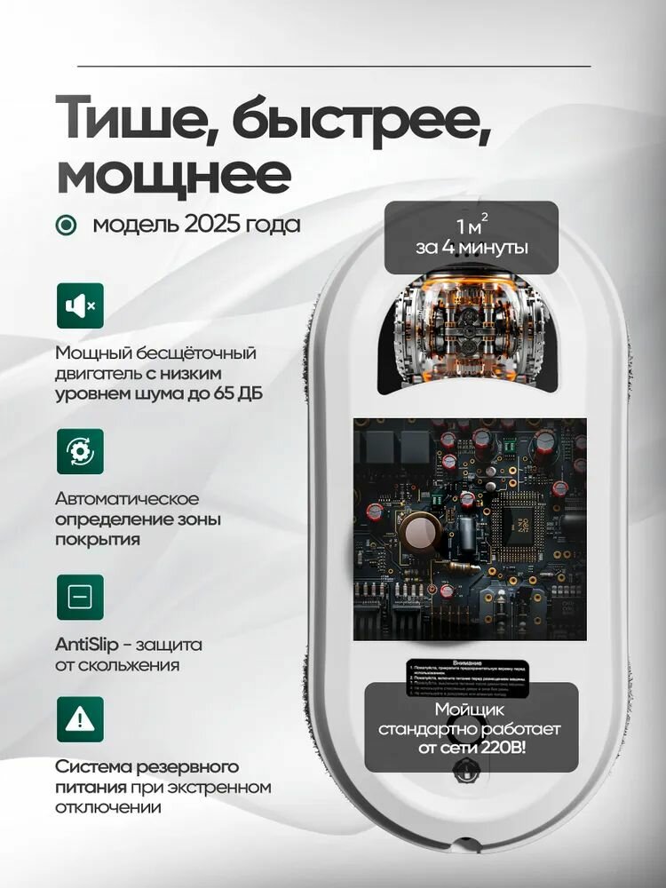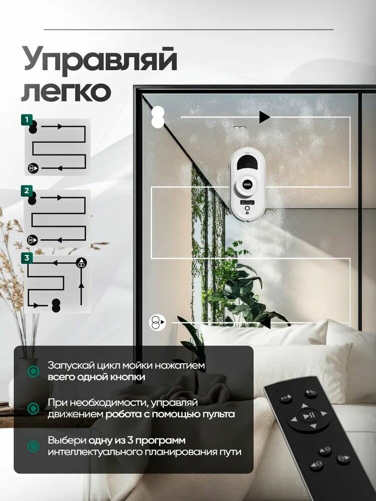 Робот для мытья окон с автоматической очисткой и безопасностью