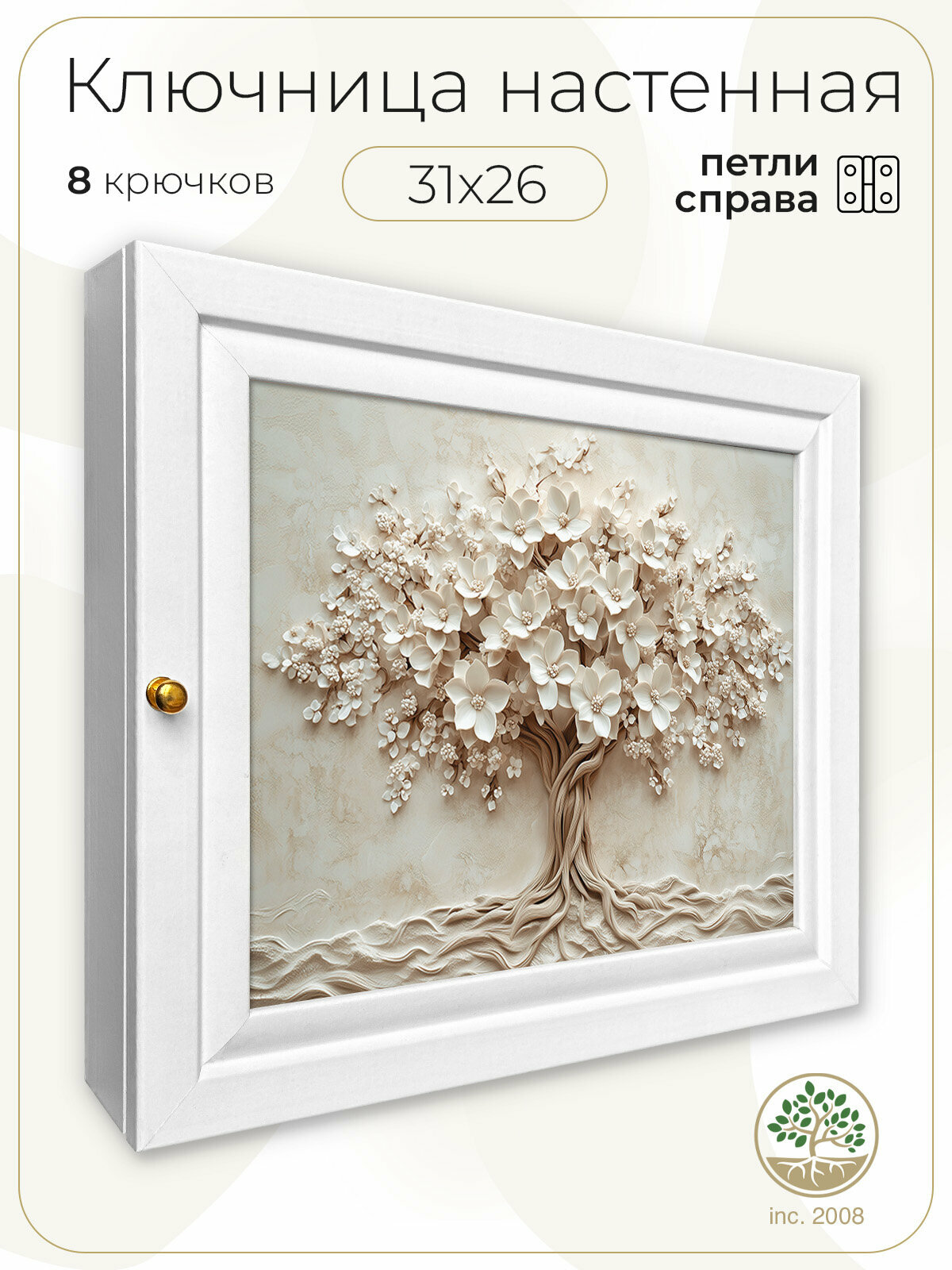 Ключница Topposters "Цветущее дерево", МДФ/ПВХ, с дверцей, белая, 31х26х5 см 1 400 ₽