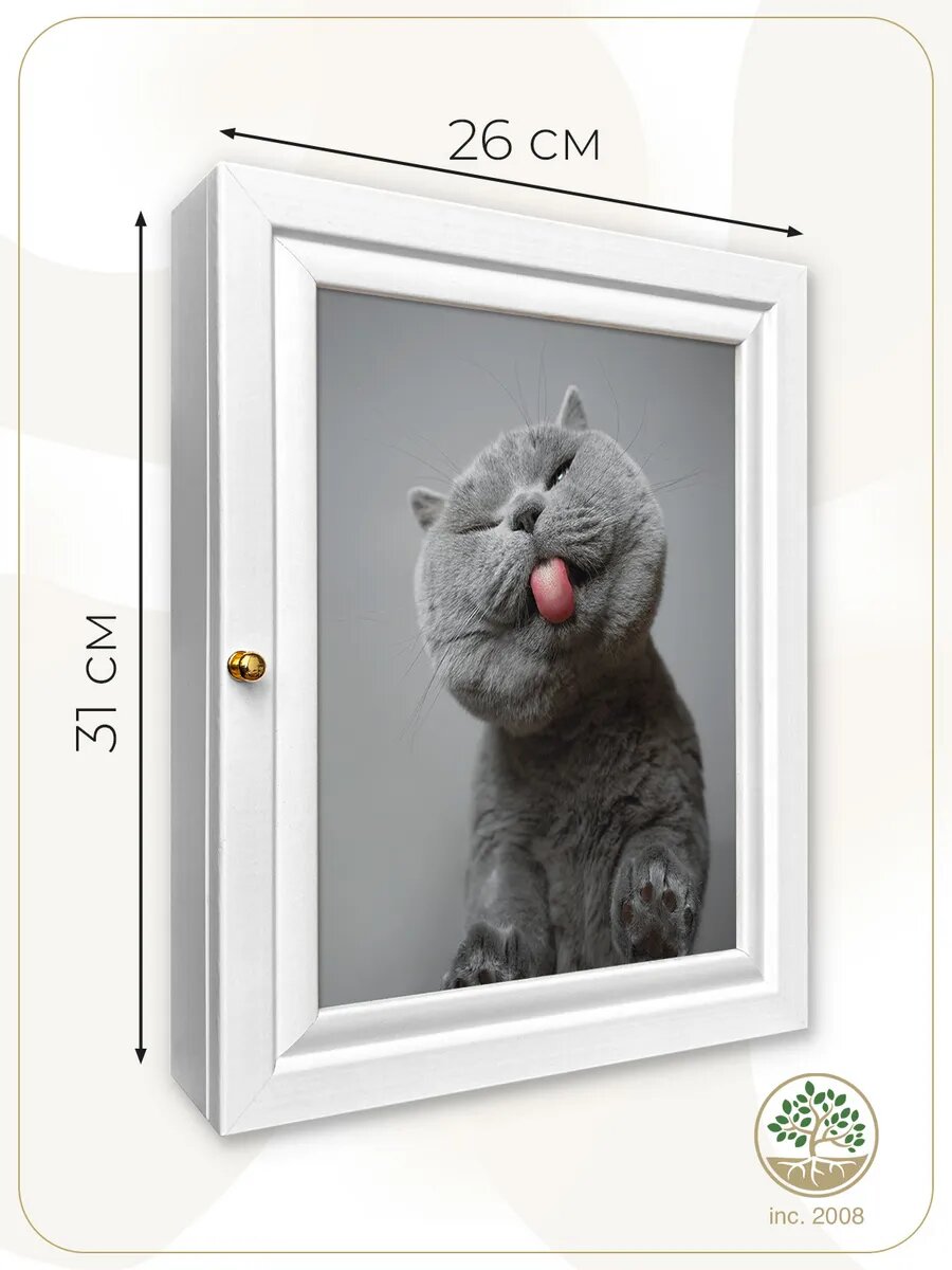 Ключница настенная с дверцей Topposters, Дымчатый кот, 26х31 см, (петли справа) информация:
