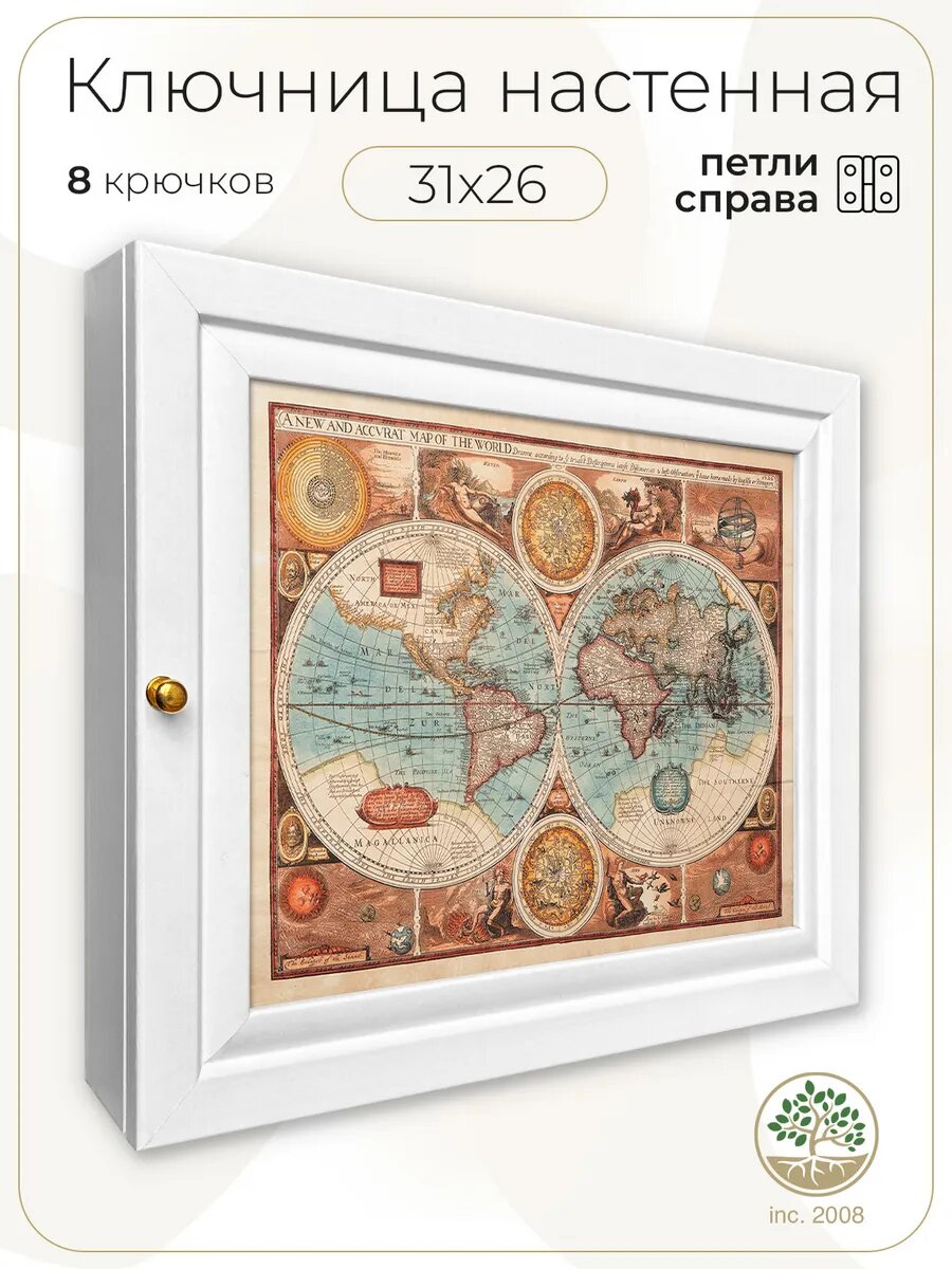 Ключница настенная с дверцей Topposters, Карта, 26х31 см, (петли справа) информация: