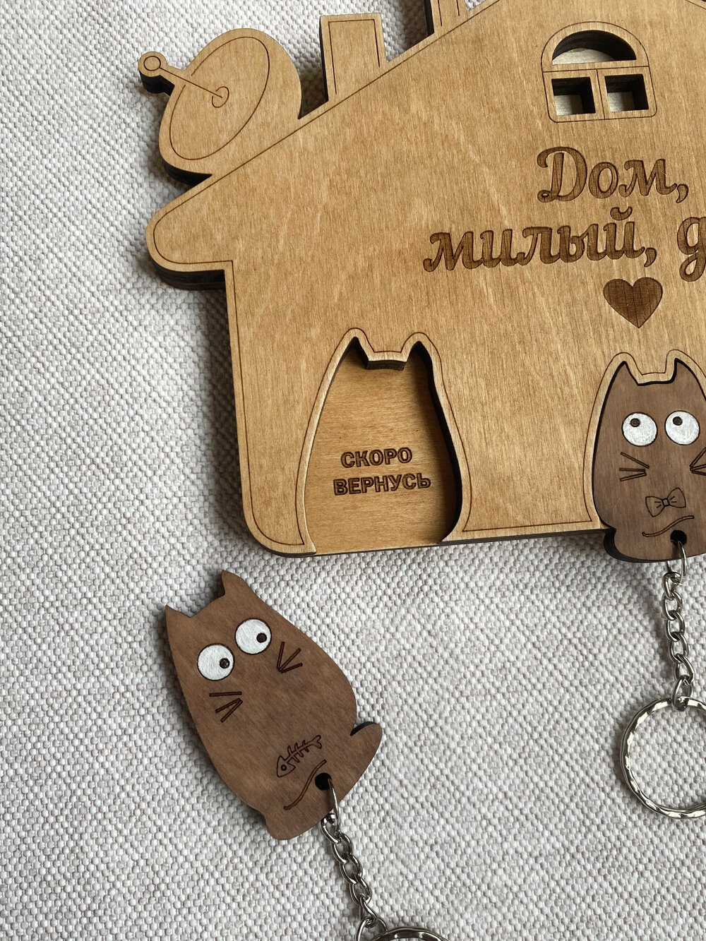 Отзывы на Ключница настенная Woodenking из дерева в прихожую "Дом там, где мы" на три брелока