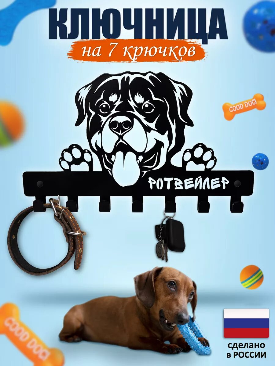 10 цен на Ключница настенная в прихожую для дома ротвейлер, металлическая
